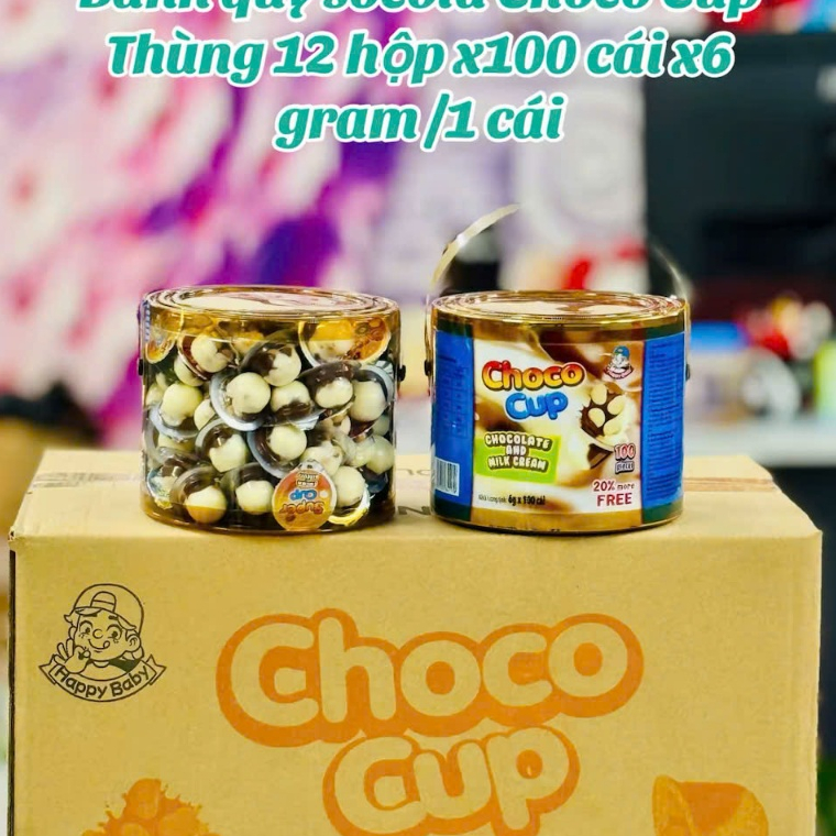 [Xách 100cup x6gam] Bánh bich qui sô cô la kem CHOCO CUP mini kèm muỗng