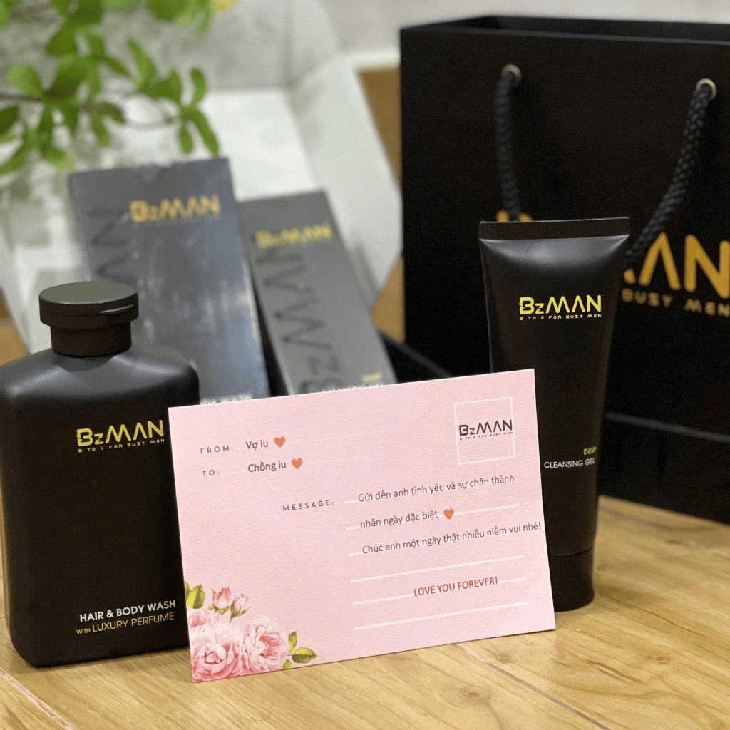 Combo Sữa Tắm Gội Hương Nước Hoa Cao Cấp 3 in 1, Sữa Rửa Mặt Nam BzMan Và Bộ Quà Tặng - VIP1