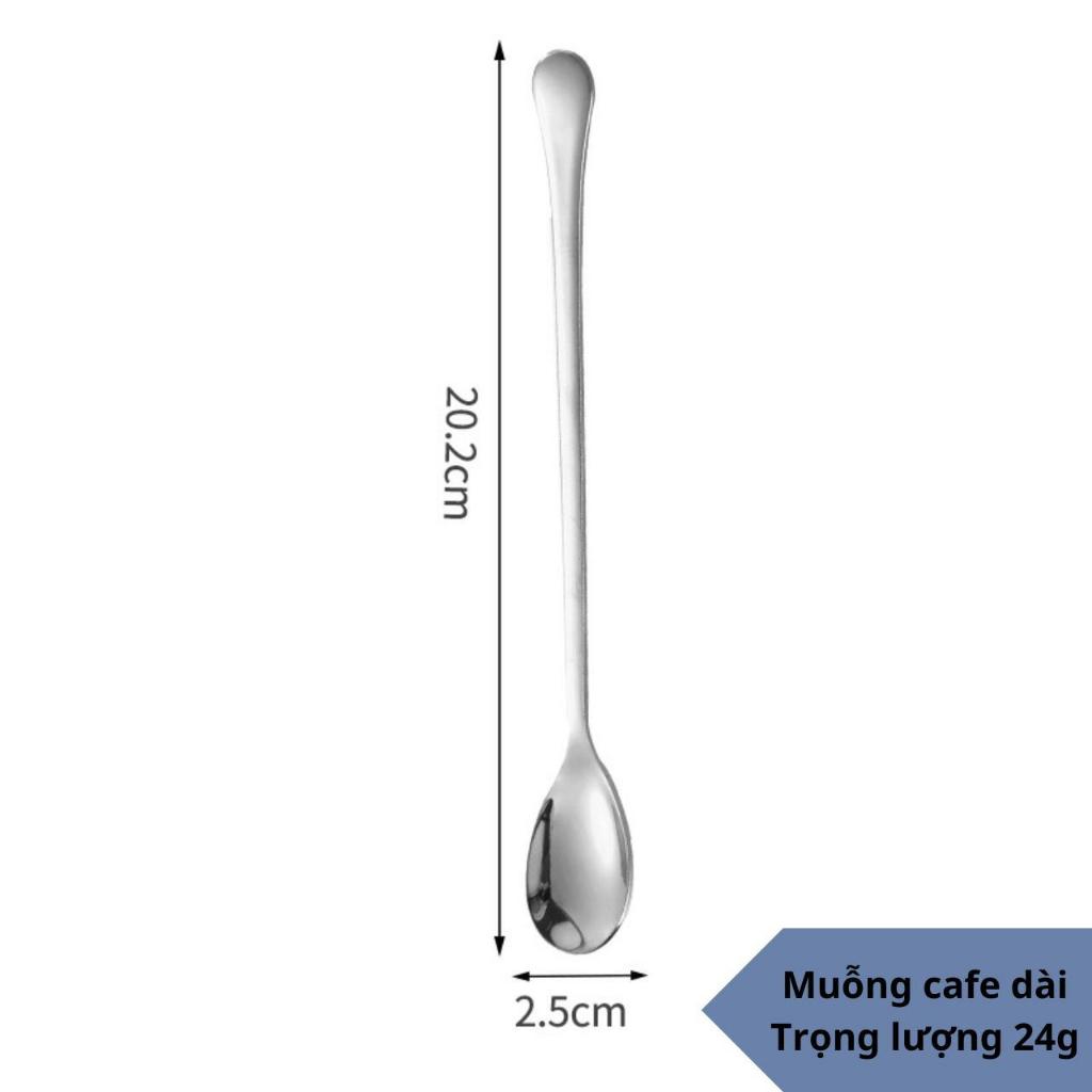 Combo 5 Muỗng Cafe Cán Dài INOX 304 Dùng Uống Trà Đào-Sinh Tố- Thìa Cocktail