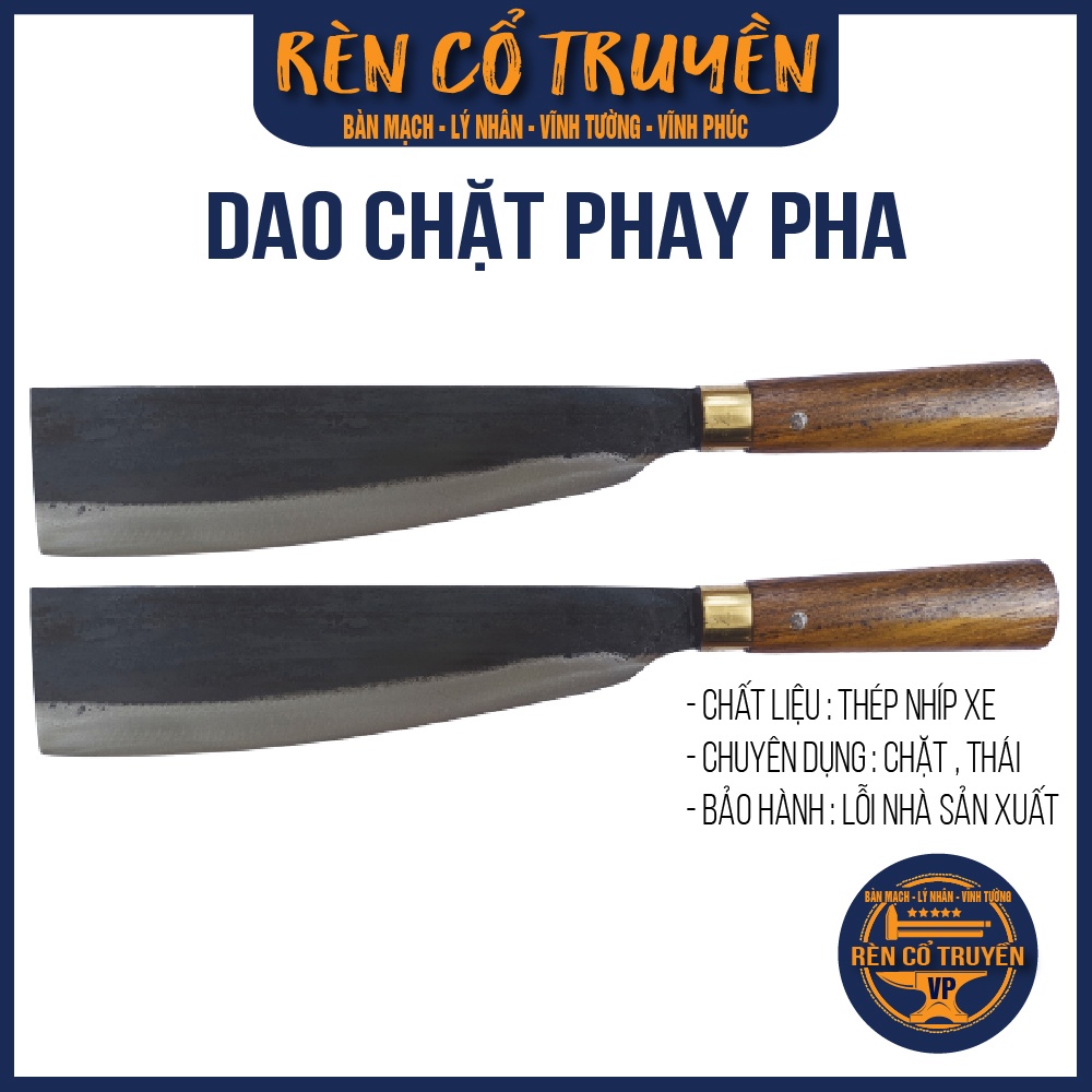 Dao Chặt thép nhíp xe ô tô - khâu Inox - cán gỗ chặt gà, chặt cá, chặt xương nhỏ, thái thịt,... rèn thủ công Lý Nhân