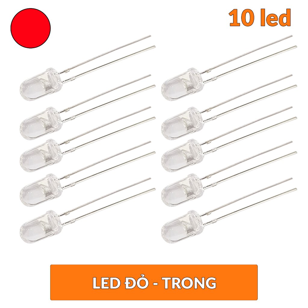 Combo 10 con Led trong 5mm màu đỏ, trắng, xanh dương, xanh lá, vàng, vàng chanh, tím nhạt