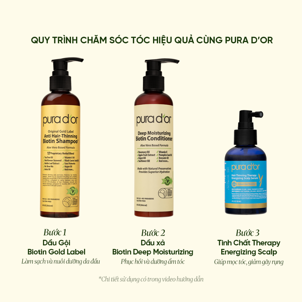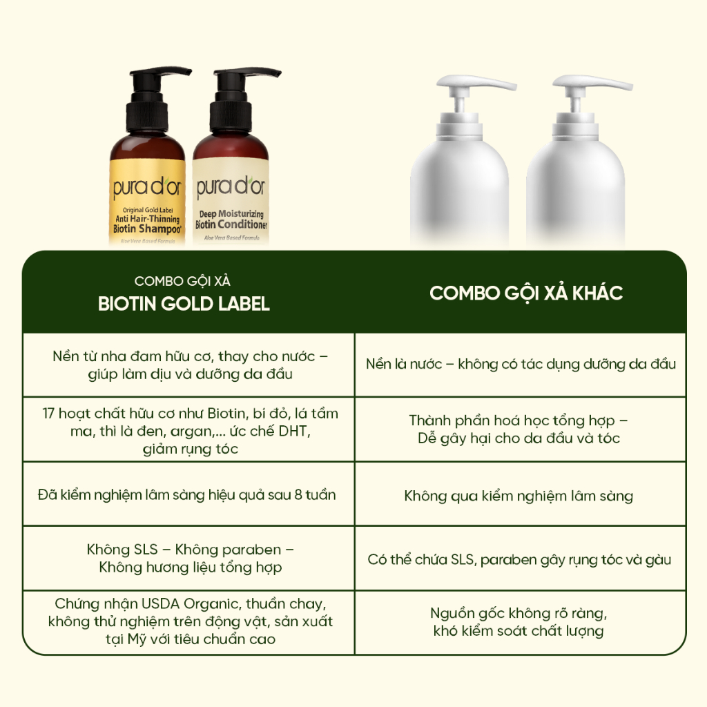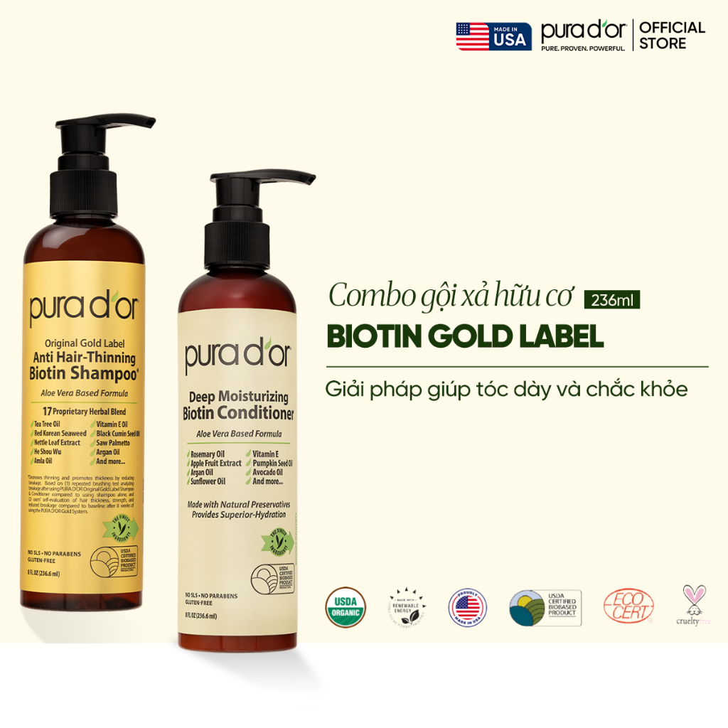 [GWP] Combo Dầu Gội Dầu Xả Hỗ Trợ Giảm Rụng Tóc, Hỗ Trợ Mọc Tóc Biotin Gold Label PURA D'OR 236ML