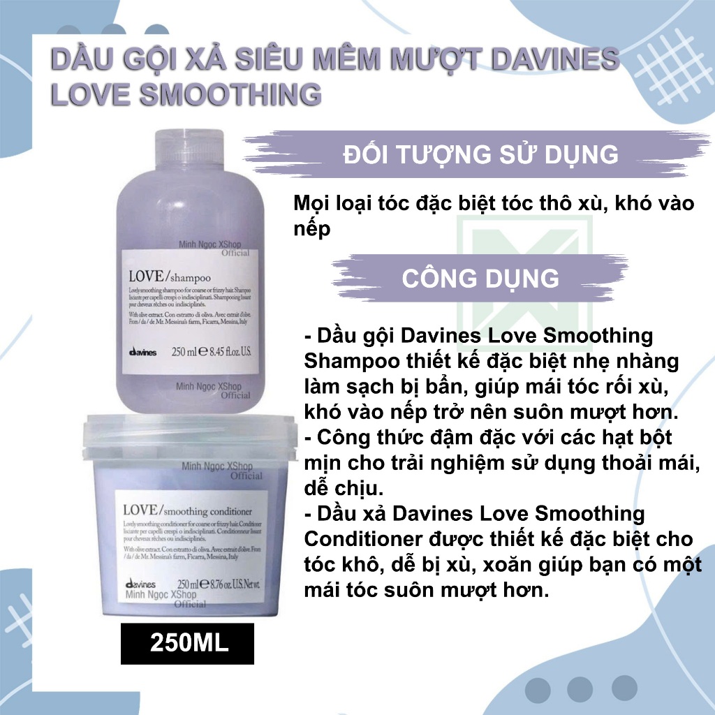 Dầu gội siêu mềm mượt DAVINES Love Smoothing Shampoo 250ML