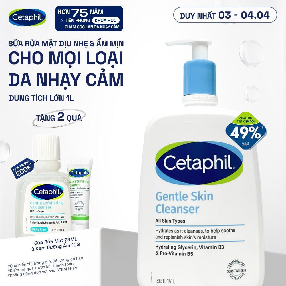 Sữa rửa mặt dịu lành cho da nhạy cảm CETAPHIL GENTLE SKIN CLEANSER 1000ML