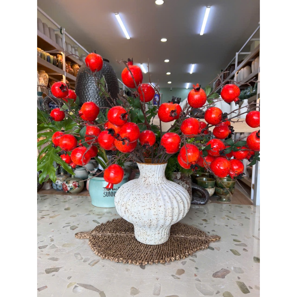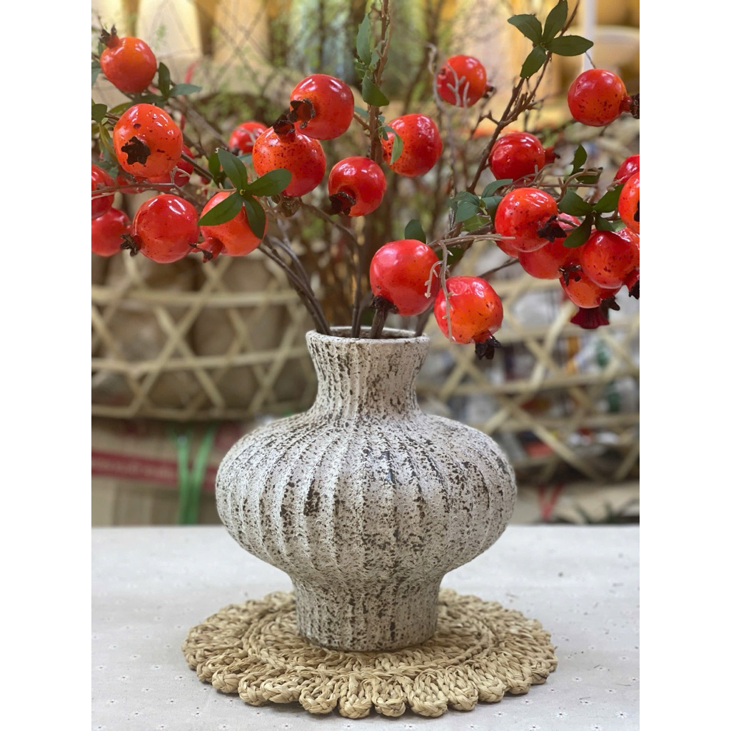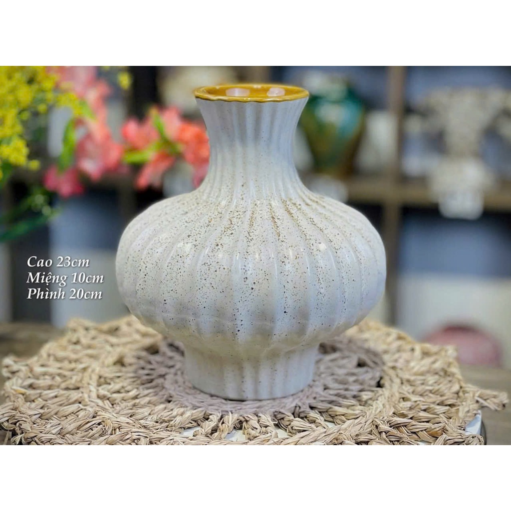 SÀI GÒN Bình Gốm Tết Dáng Đèn Lồng men Mộc Atlantis cao 27cm miệng 10 Cắm Hoa Bày Ban Trang Trí Decor Phòng Khách