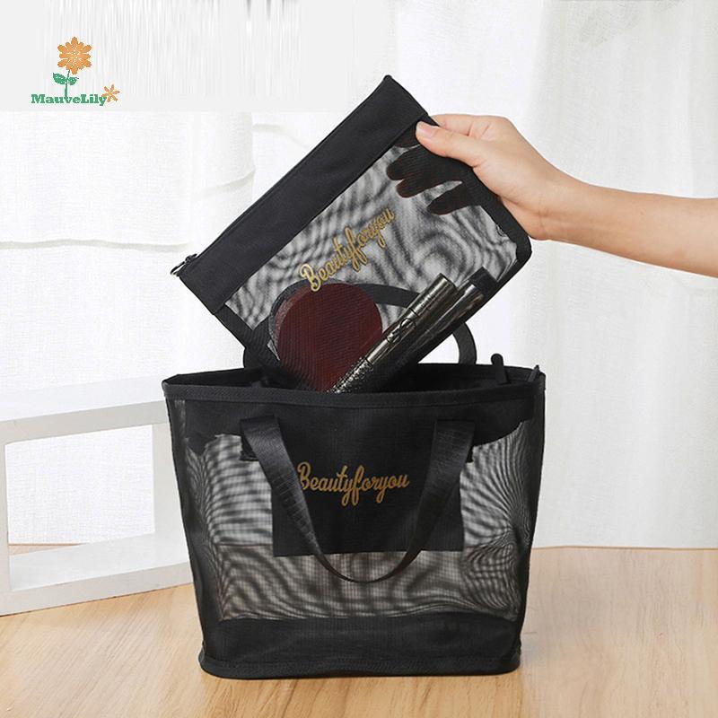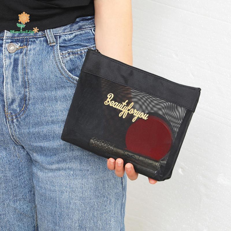 [LILY-T] Túi đựng mỹ phẩm du lịch màu đen dành cho nữ Dây kéo Hộp đựng đồ trang điểm Túi đựng đồ vệ sinh Túi làm đẹp