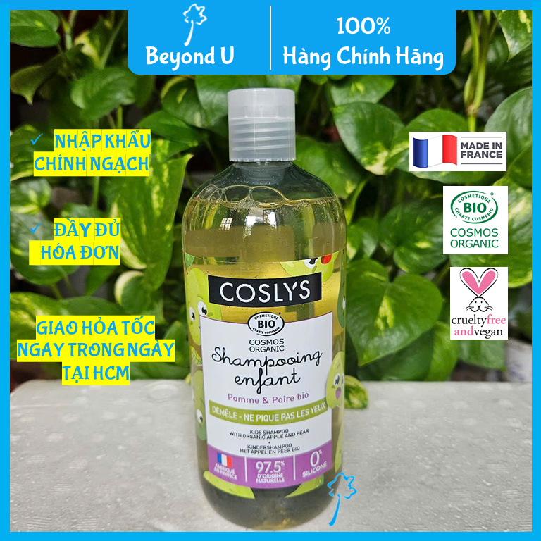 Dầu gội trẻ em chiết xuất táo và lê hữu cơ Coslys (500ml)