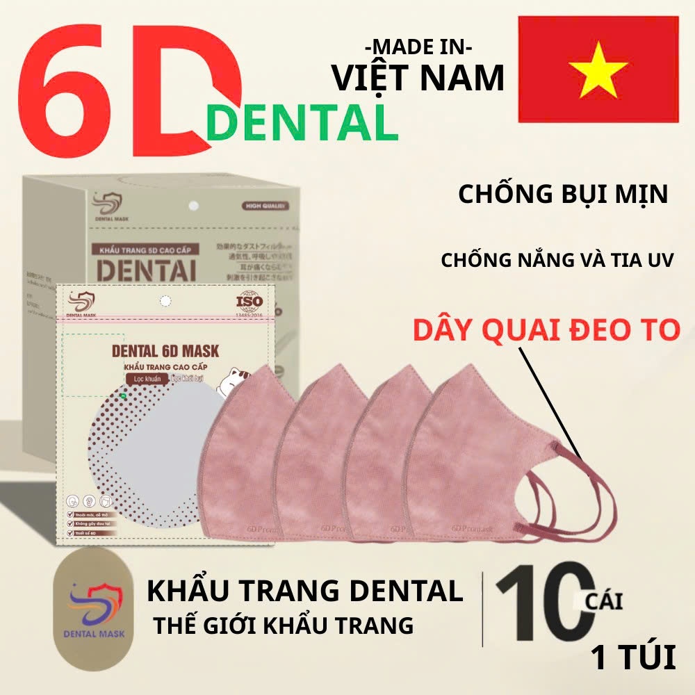 Thùng 200 cái Khẩu Trang 6D, 3 Lớp Thoáng Khí DENTAL MASK 6 Màu Thời Trang chông tia UV