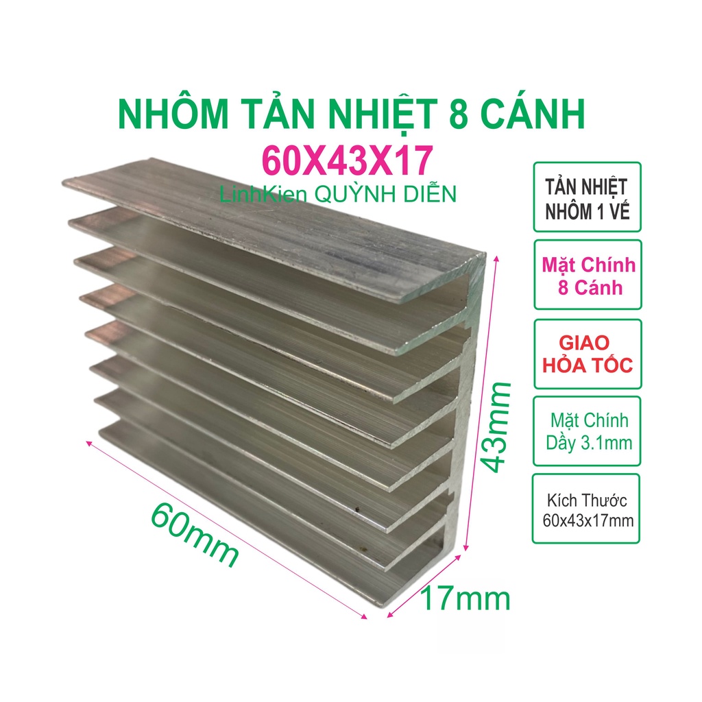 Nhôm Tản Nhiệt 8 Cánh 60x43x17mm - Linh Kiện Điện Tử QUỲNH DIỄN
