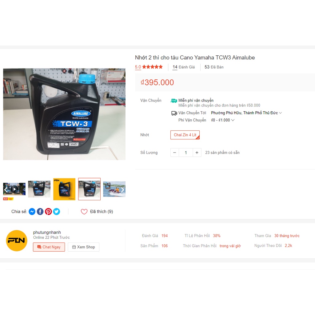 Nhớt 2 Kì Nhớt 2 Thì Dành Cho Tàu Cano, Máy Cano 2 Kỳ Thương Hiệu Aimalube TCW3 Chai 4 Lítw
