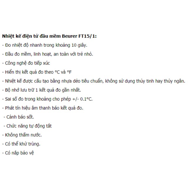 Nhiệt kế điện tử đầu mềm Beurer FT15/1, máy đo thân nhiệt, đo nhiệt độ, chống nước, đo nhanh chính xác