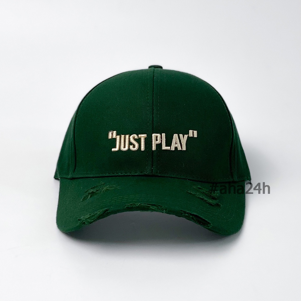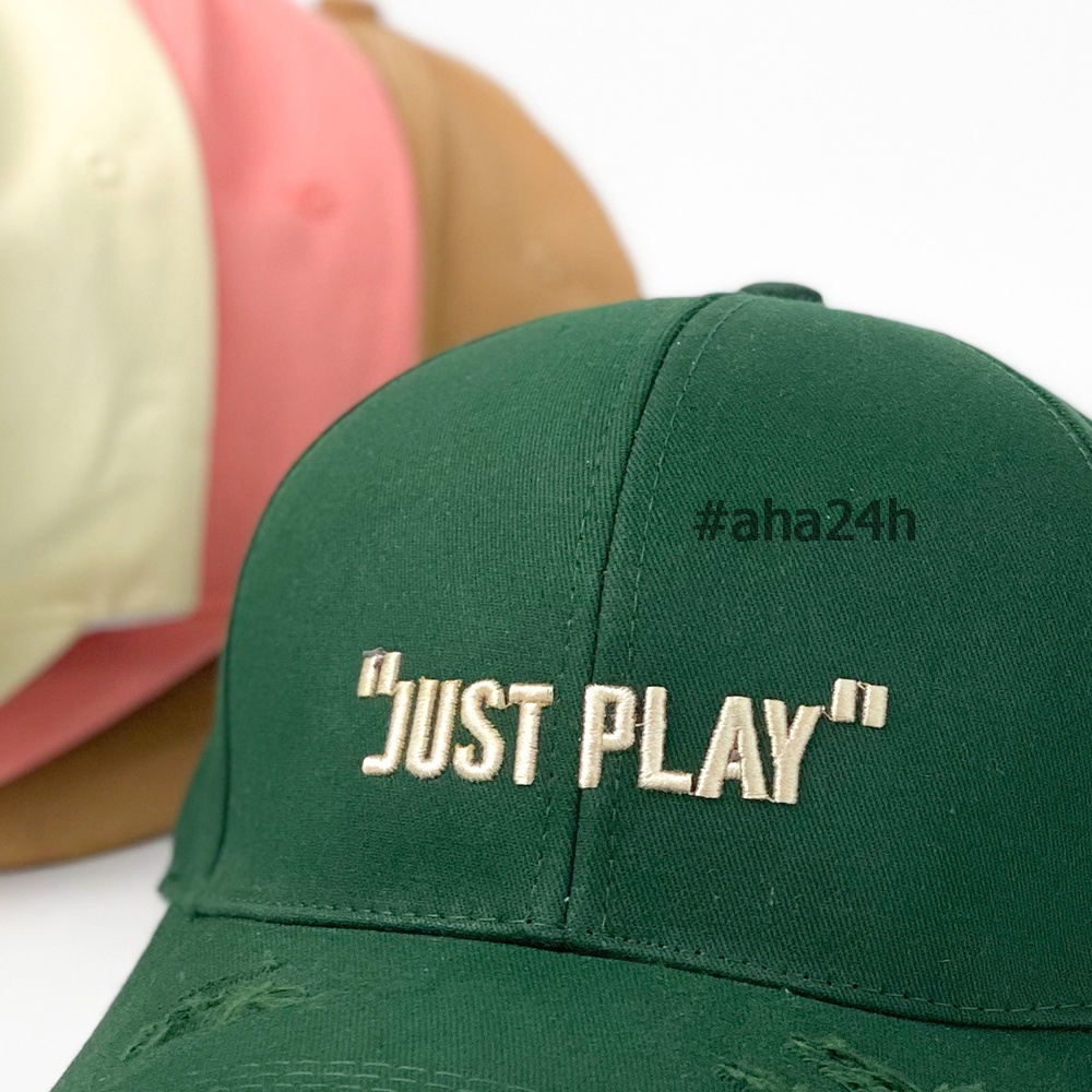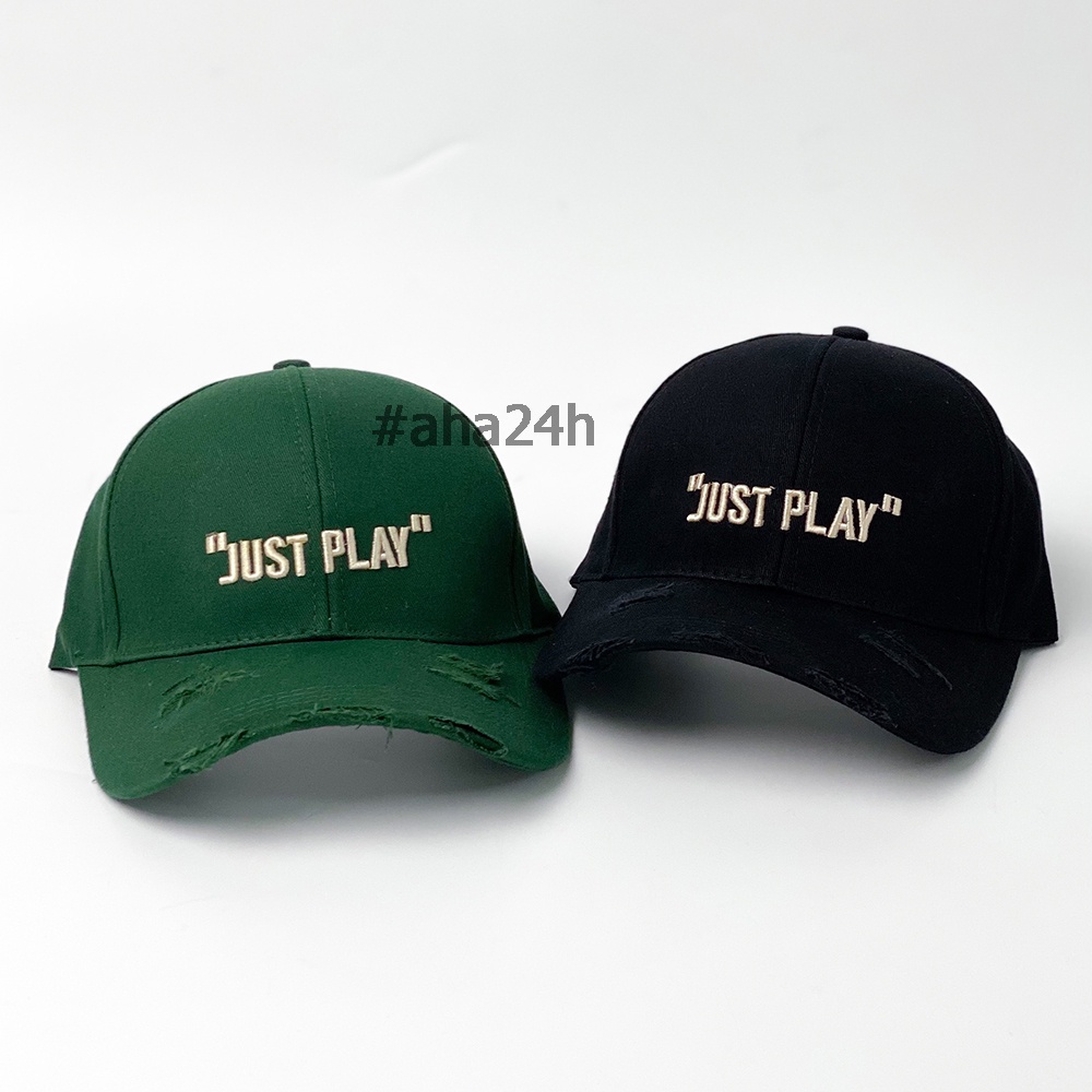 Mũ lưỡi trai thêu chữ JUST PLAY cào rách thời trang nón kết nam nữ AH1672