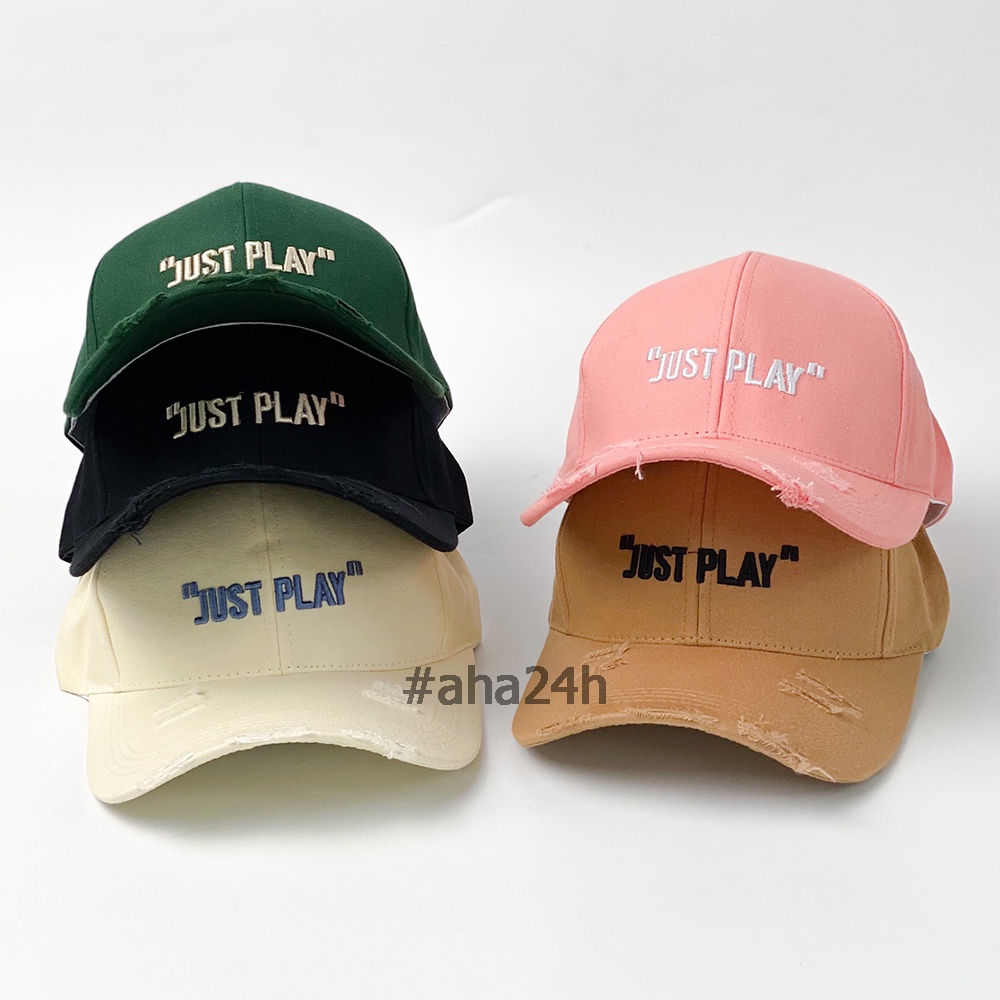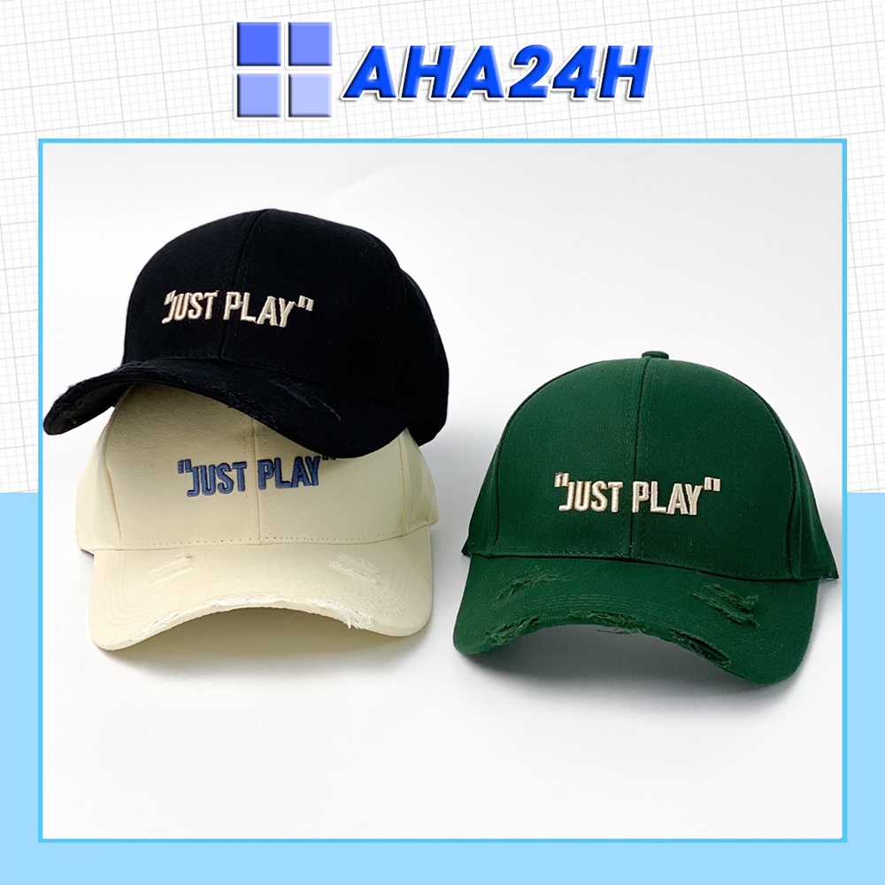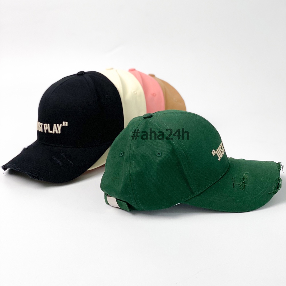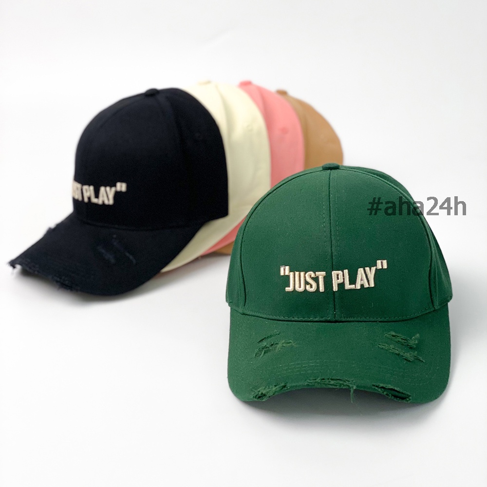 Mũ lưỡi trai thêu chữ JUST PLAY cào rách thời trang nón kết nam nữ AH1672