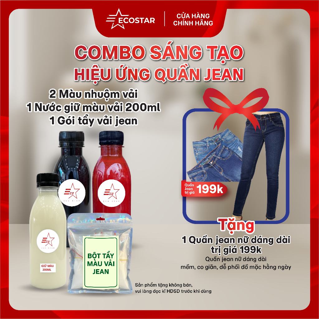 Combo: Nhuộm hiệu ứng Jean sáng tạo, Màu nhuộm vải 2 lọ, Chất giữ màu chống phai 200ml, kèm tặng, Quần Jeans Nữ