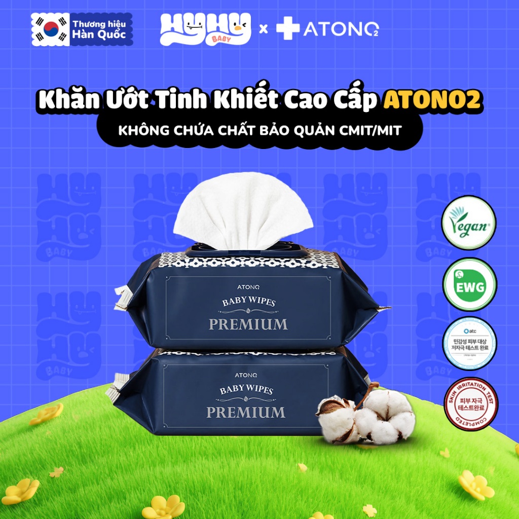 Khăn Ướt Tinh Khiết ATONO2 Hàn Quốc 70 tờ, Khăn Giấy Ướt Không Mùi Không Chất Bảo Quản Dành Cho Trẻ Từ Sơ Sinh