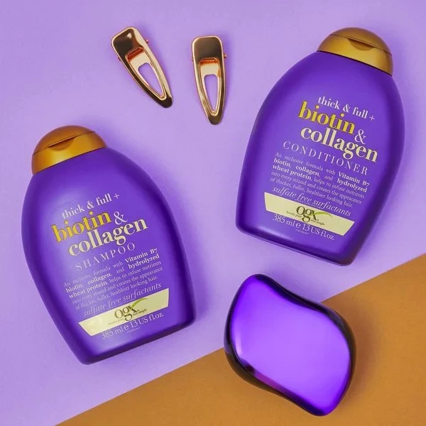 Bộ Gội Xả OGX Biotin & Collagen Thick And Full 385mL – Hỗ Trợ Dày Tóc, Giảm Gãy Rụng