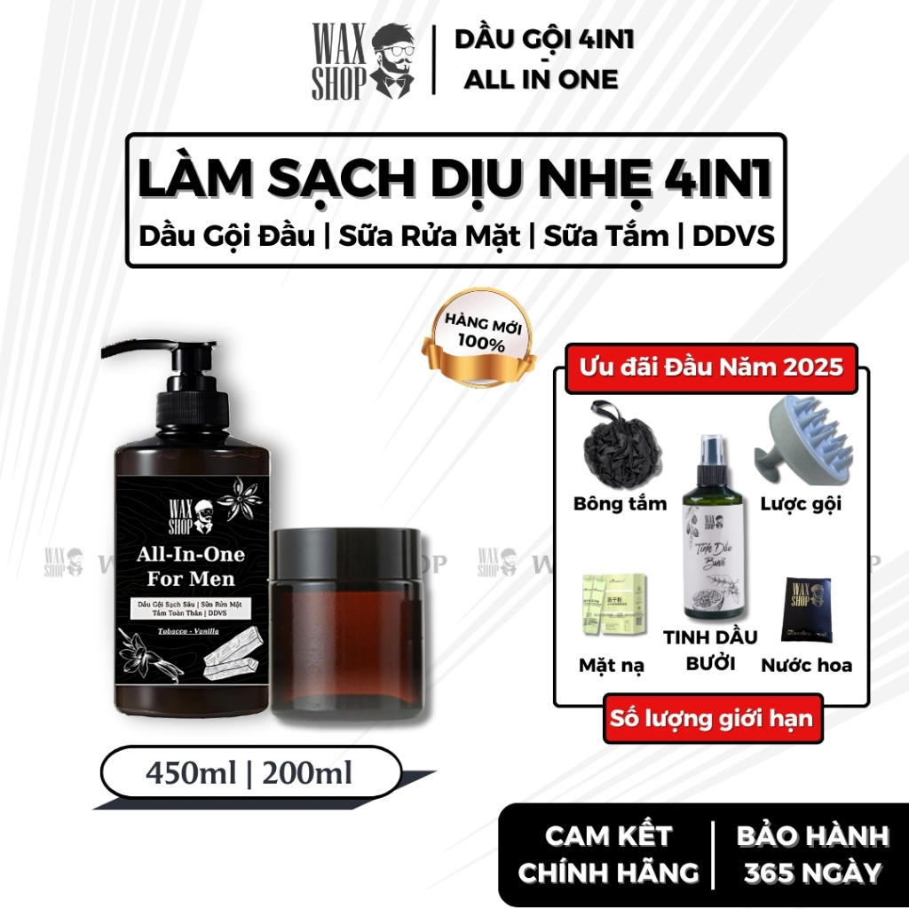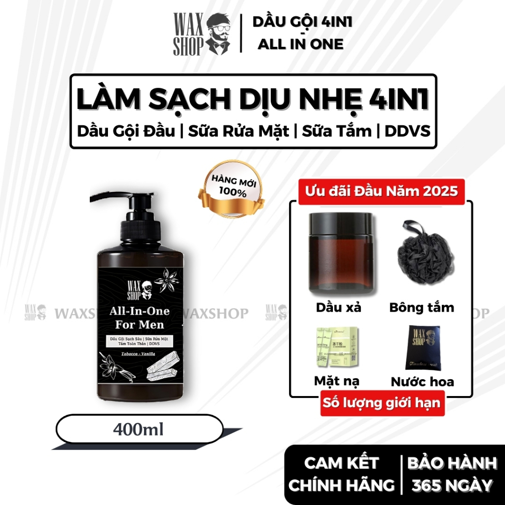 Dầu gội 4in1 nam cao cấp All in One For Men giúp tóc mềm mượt và chắc khỏe - Waxshop