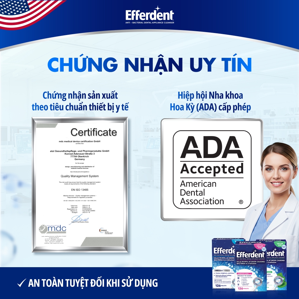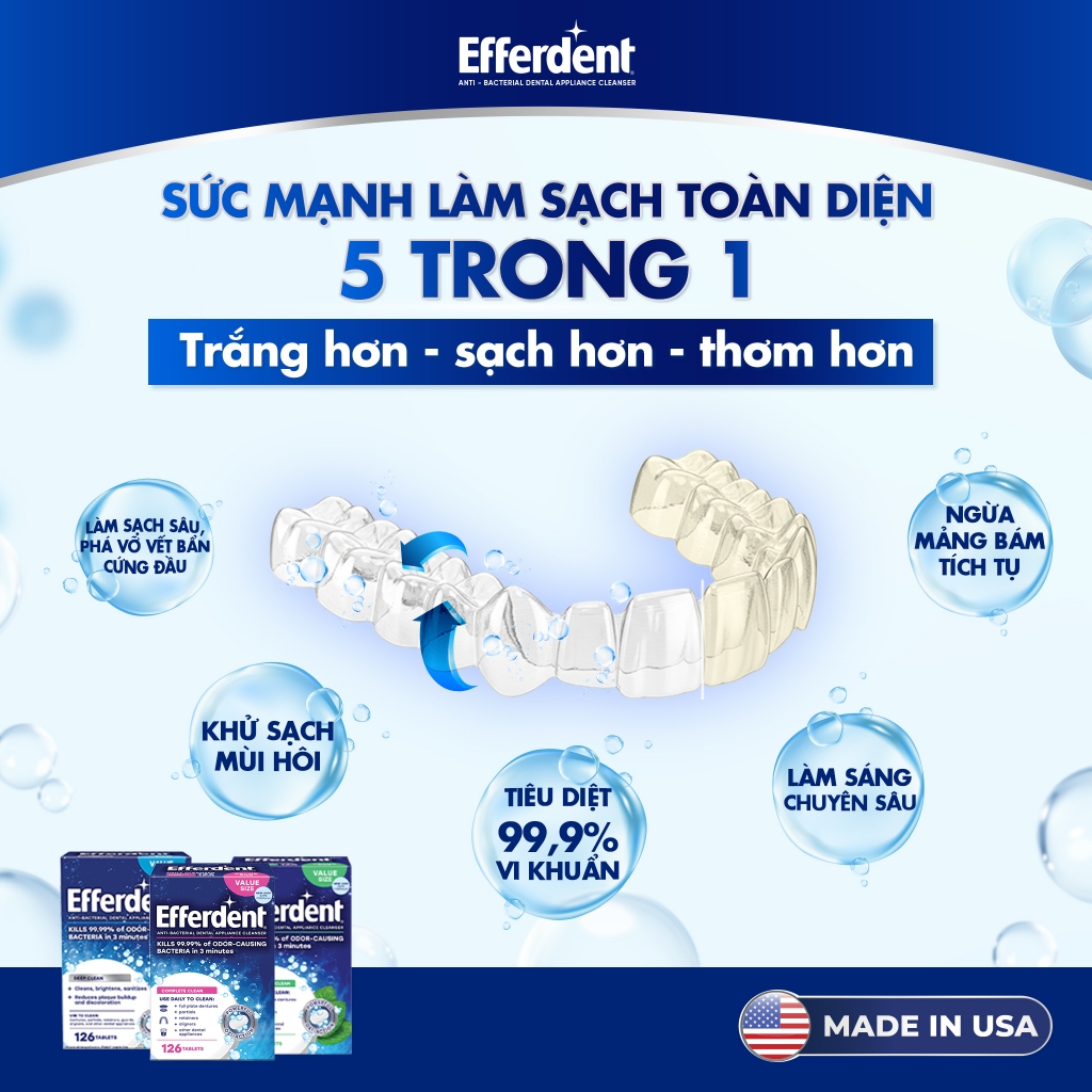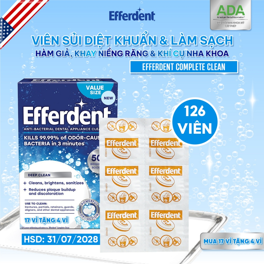 Hộp viên sủi làm sạch khay niềng răng, hàm duy trì Efferdent Minty Fresh and Clean Denture Cleanser