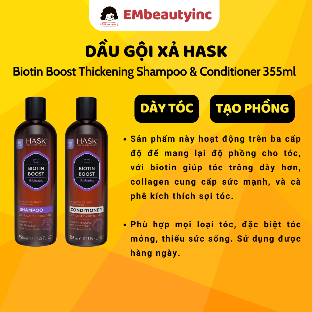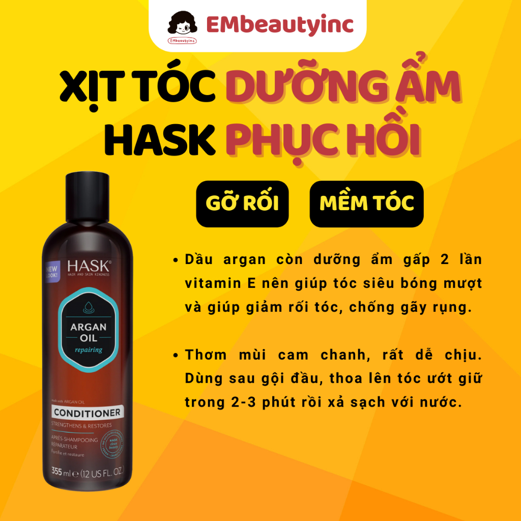 Dầu Gội Xả HASK ARGAN OIL Repairing Giúp Tóc Bóng Mượt, Gỡ Rối, Giảm Rụng 355ml
