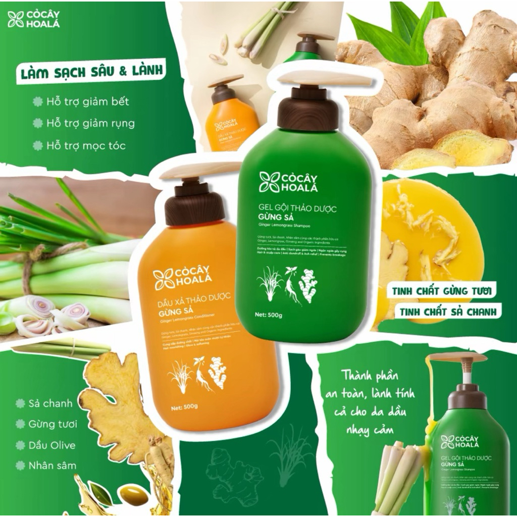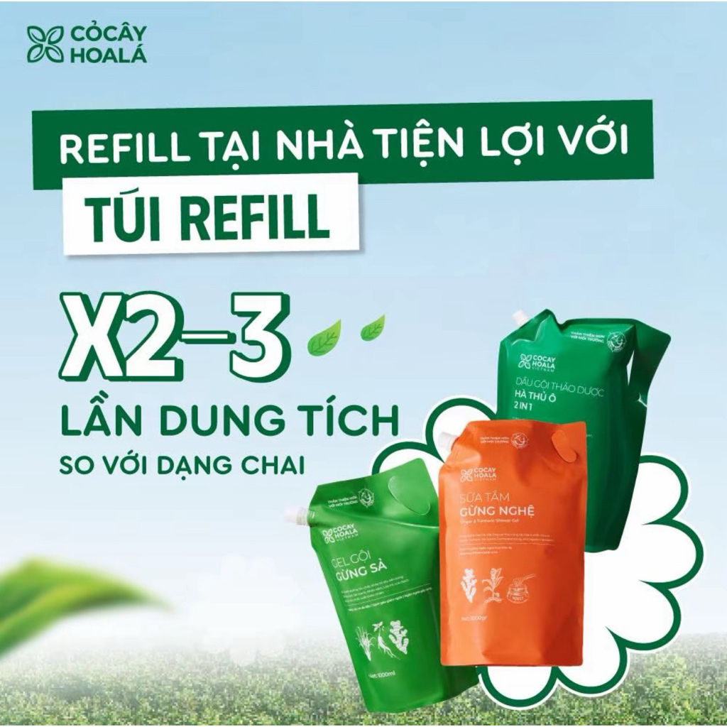Túi Refill Gel Gội Gừng Sả 1000g – Cỏ Cây Hoa Lá – Làm Sạch Da Đầu, Hỗ Trợ Giảm Bết Dầu