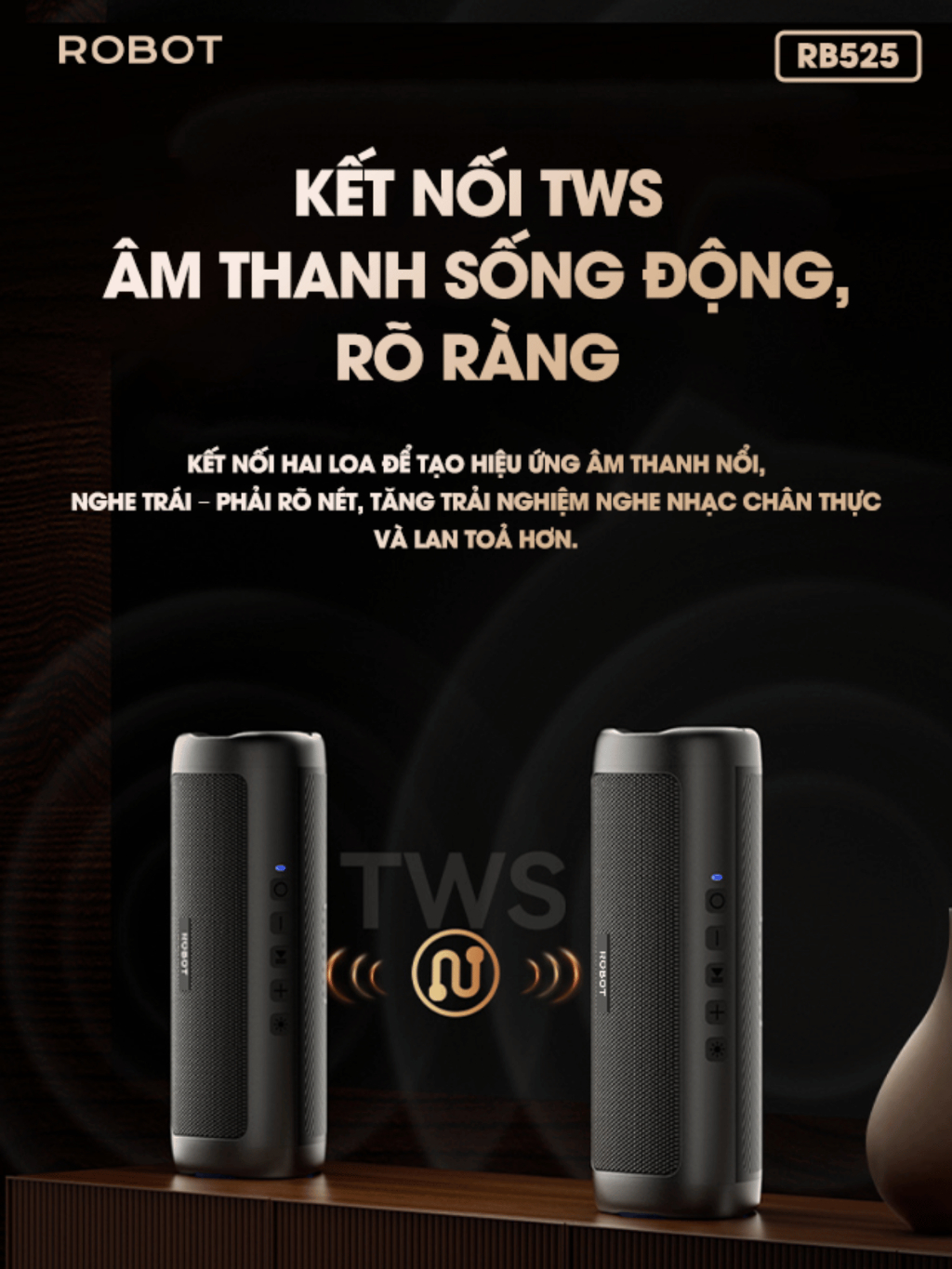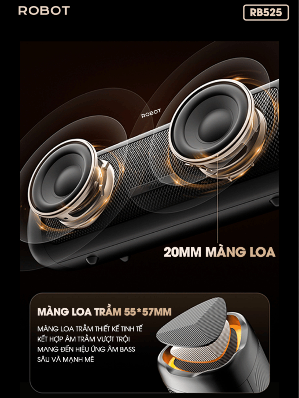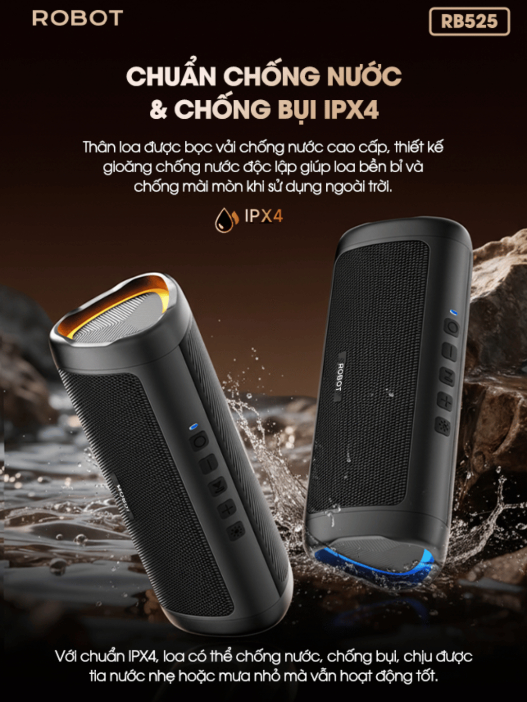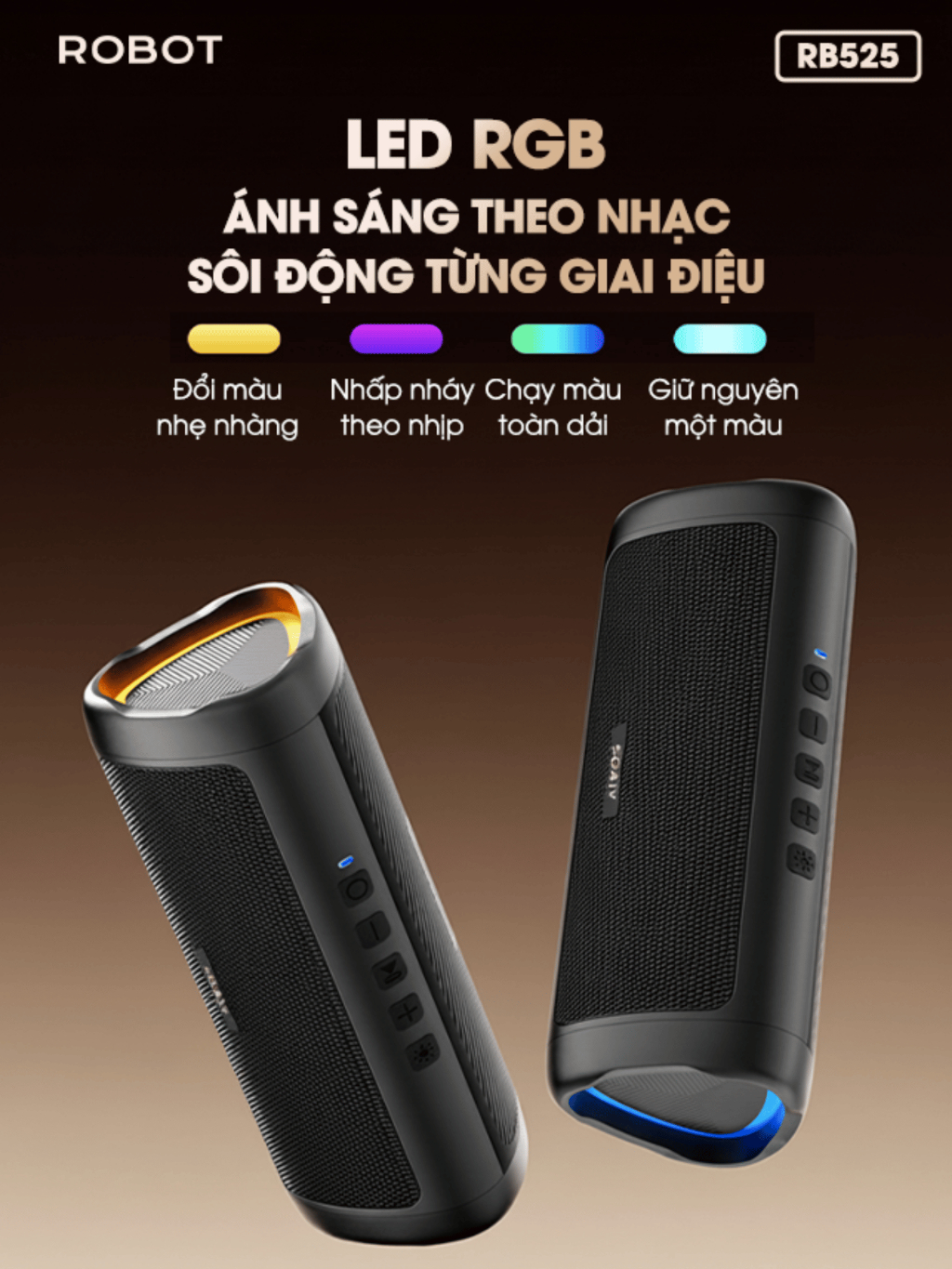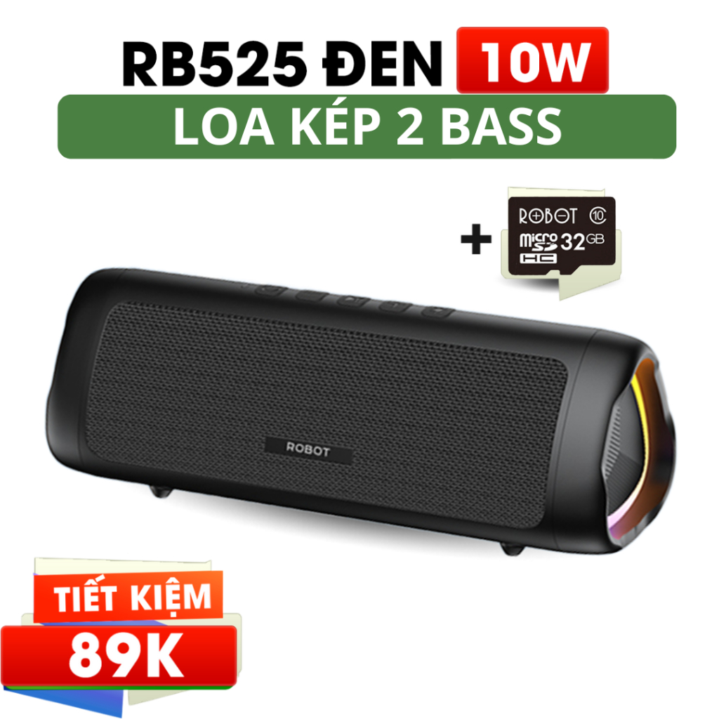Loa Bluetooth 5.3 Robot RB525 Bass Mạnh 10W Đèn Led RGB, Kháng Nước, Pin Trâu - Hỗ Trợ Kết Nối Thẻ Nhớ, AUX