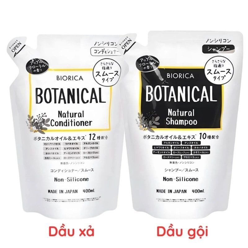 Cặp Dầu Gội, Dầu xả Táo Đen Hatomugi Botanical Nhật Bản không chứa Silicone 400mlx2 tem logo mới