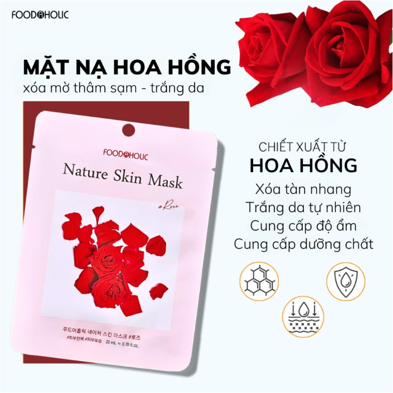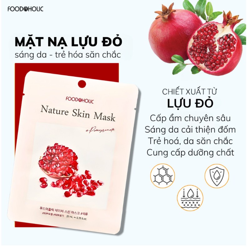 Combo 5 Mặt Nạ Thiên Nhiên Dưỡng Ẩm Giảm Mụn Trắng Da Foodaholic Nature Skin Mask 23gx5