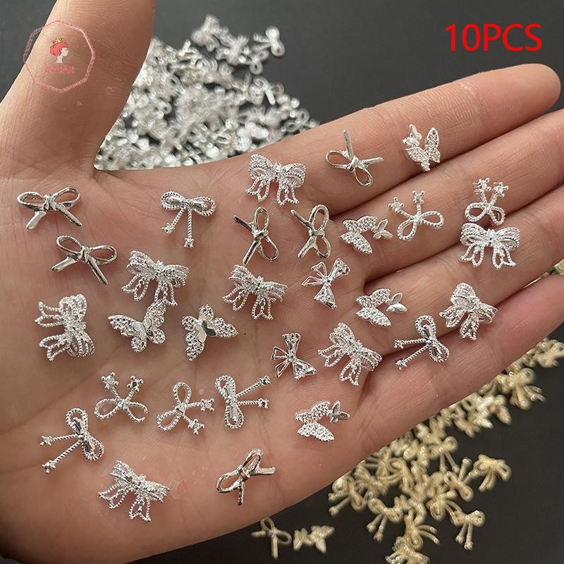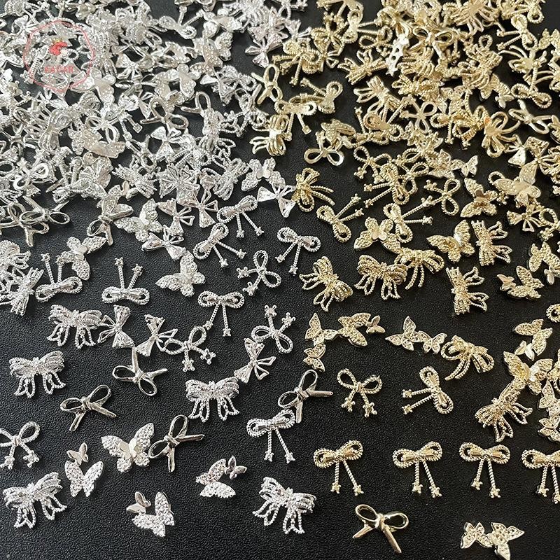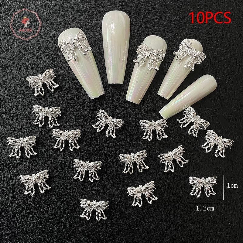 Aacar Vàng Hoa Bạc Phụ Kiện Làm Móng Tay Kim Cương Giả Móng Tay Nghệ Thuật Trang Sức Nơ Trang Trí Móng Tay 3D Móng Tay Nghệ Thuật Khoan *