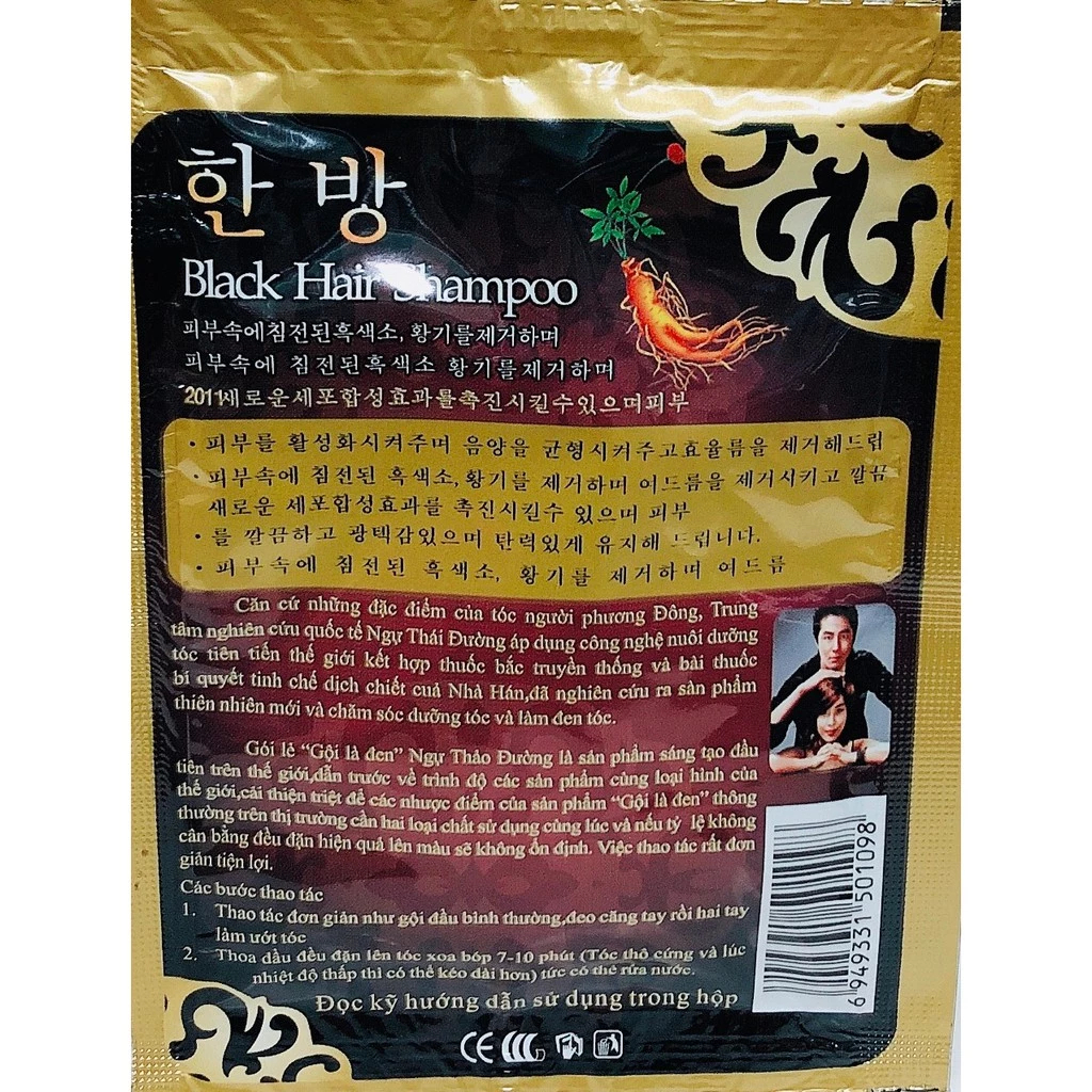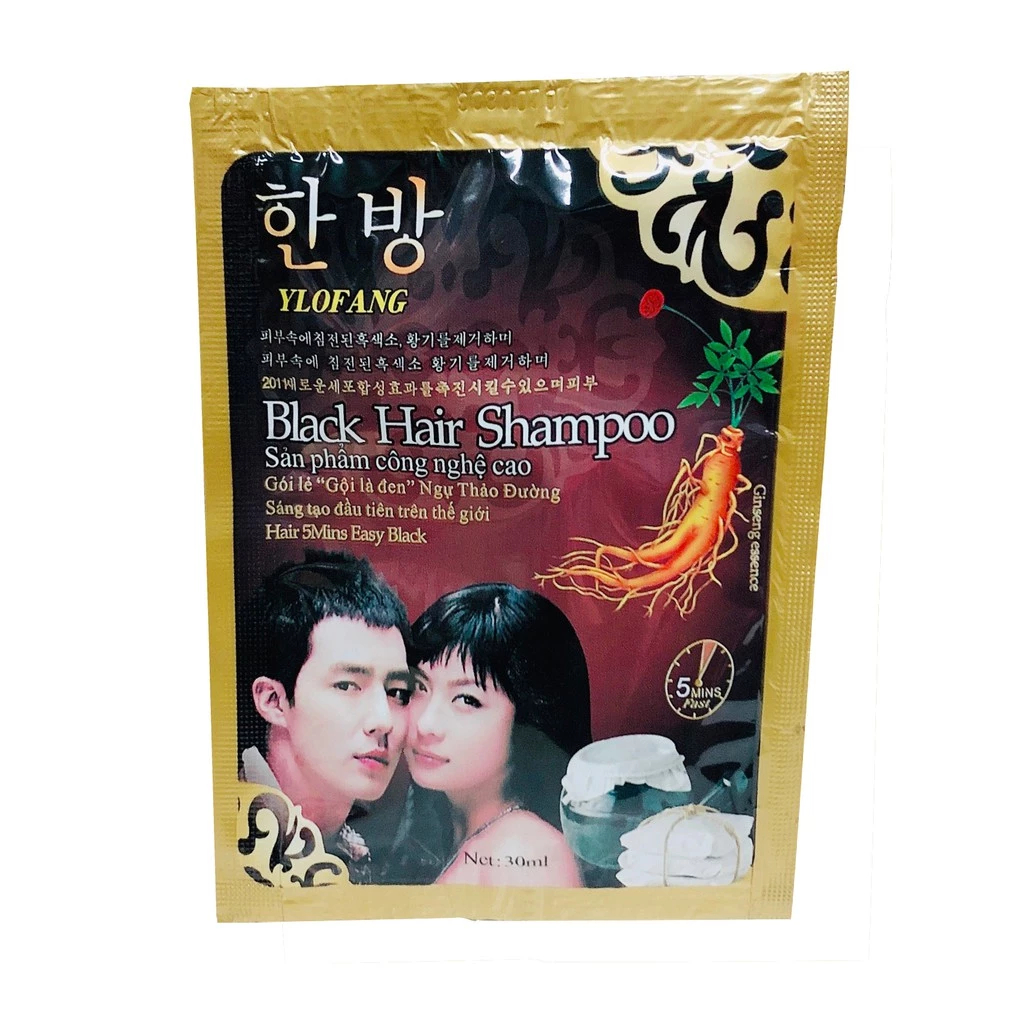 Gói Dầu Gội Nhuộm Đen Tóc Black Hair Shampoo, Dầu gội đen tóc nhân sâm beauty Hàn Quốc Chính Hãng MPHS