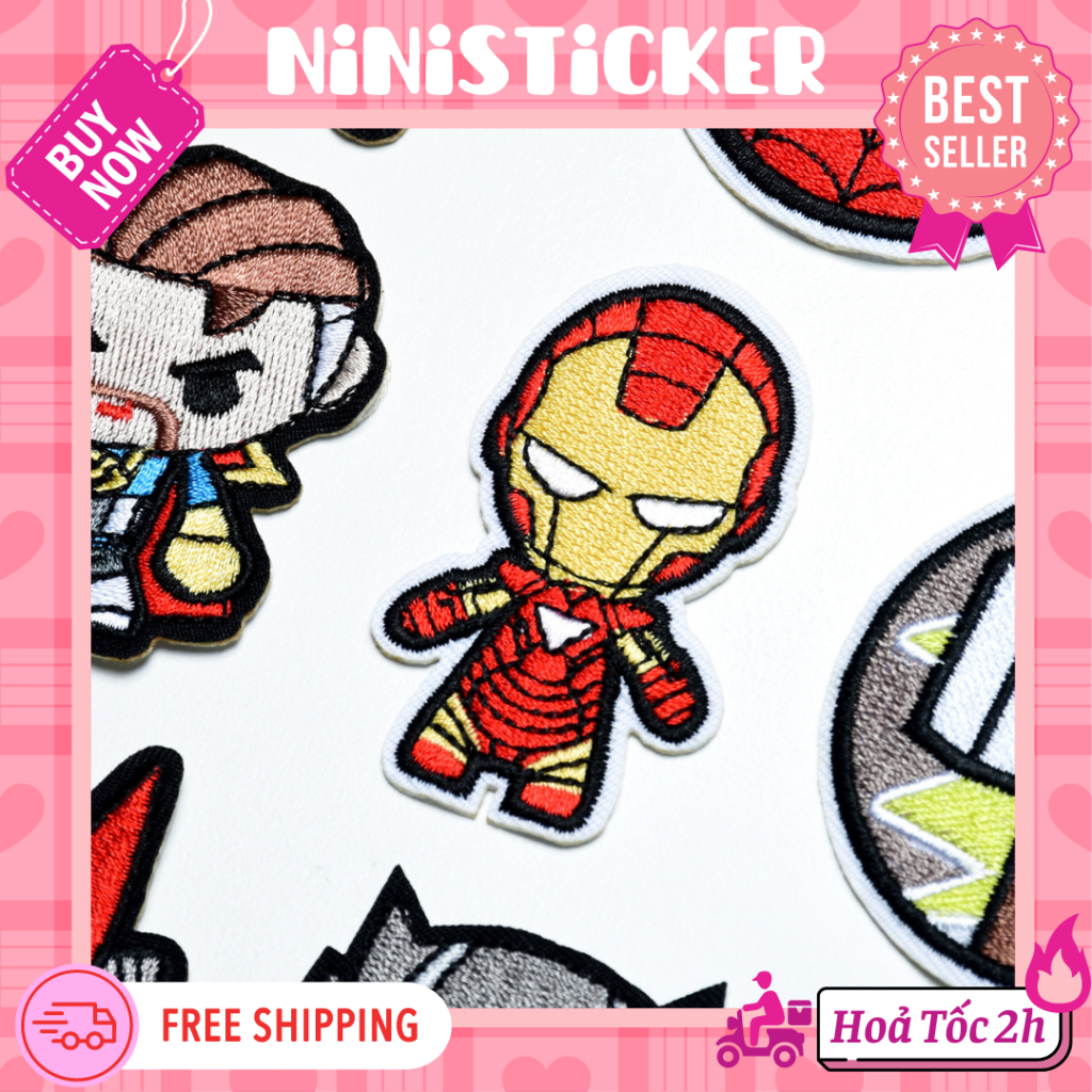 Iron Patch, Miếng Ủi Thêu Quần Áo, Sticker Vá Đồ Rách Anh Hùng Siêu Nhân Batman Ironman Hulk Captain Thor Ninisticker