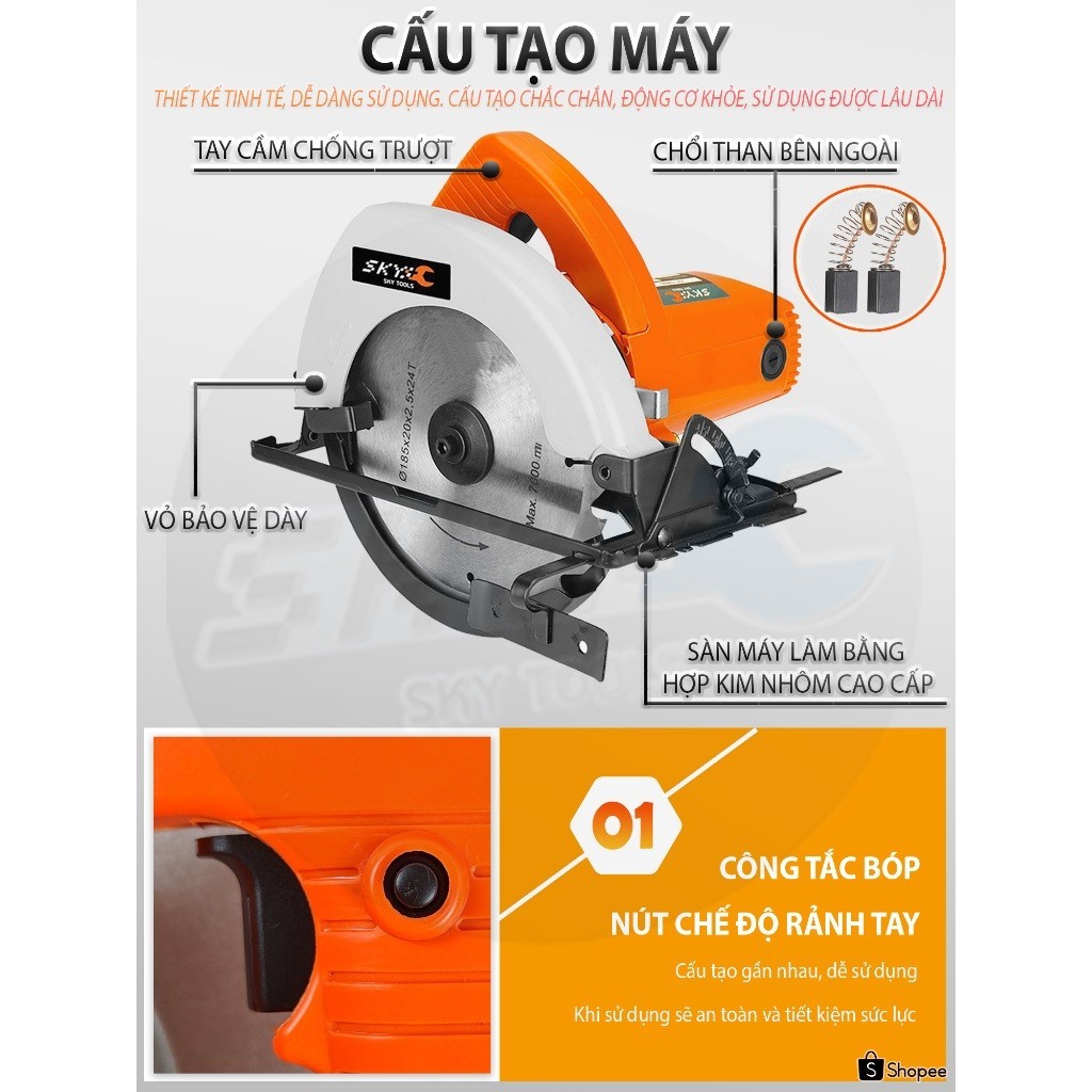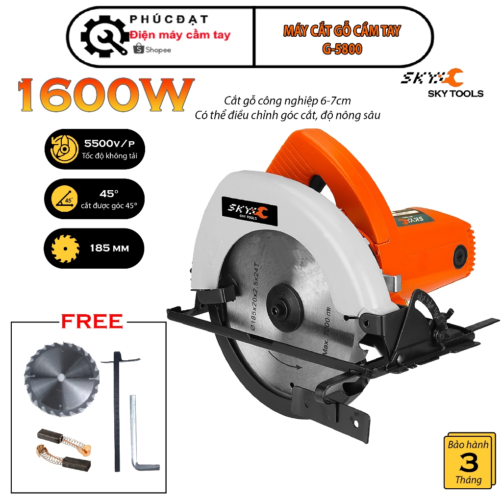 Máy cắt gỗ, máy cưa gỗ cầm tay G5800, công suất lớn 1600w, lưỡi 185mm, chính hãng GGG, tốc độ 5500v/p