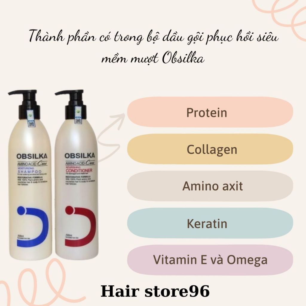 Dầu gội cặp OBSILKA 500ML dưỡng tóc phục hồi hư tổn phù hợp da dầu( Mẫu mới)