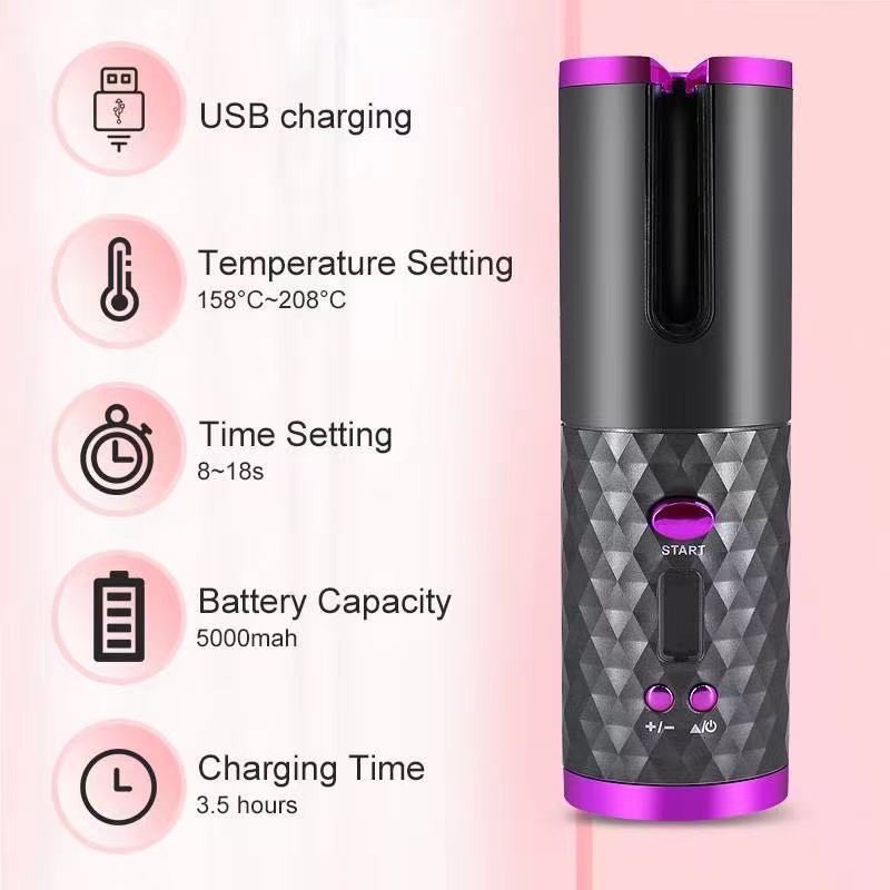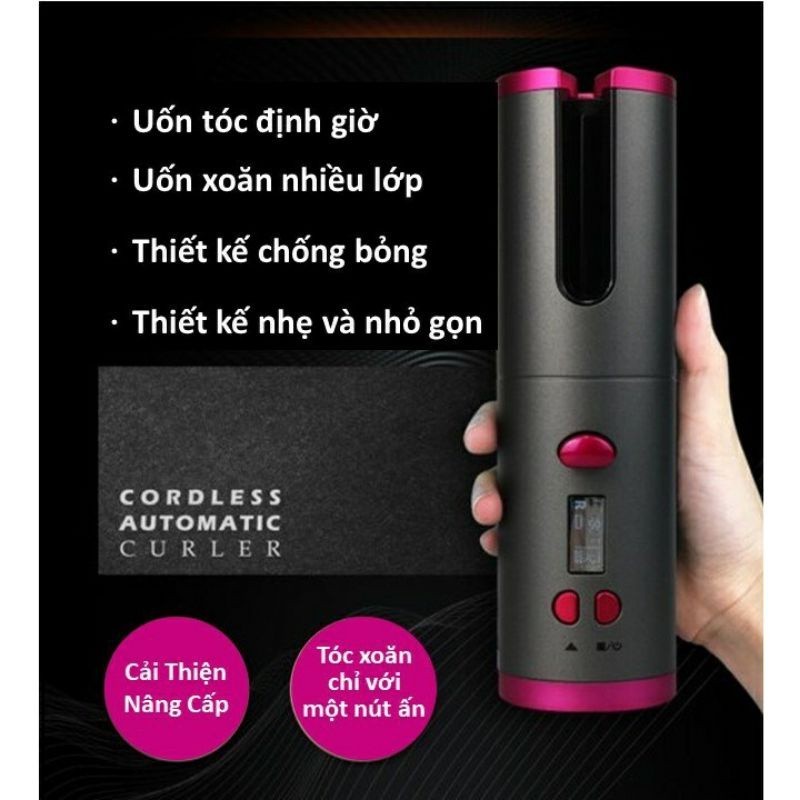 Máy uốn tóc tự động sạc USB không cần dây điện mang đi mọi nơi - Tích điện 60 phút - đem du lịch đi chơi tiện dụng