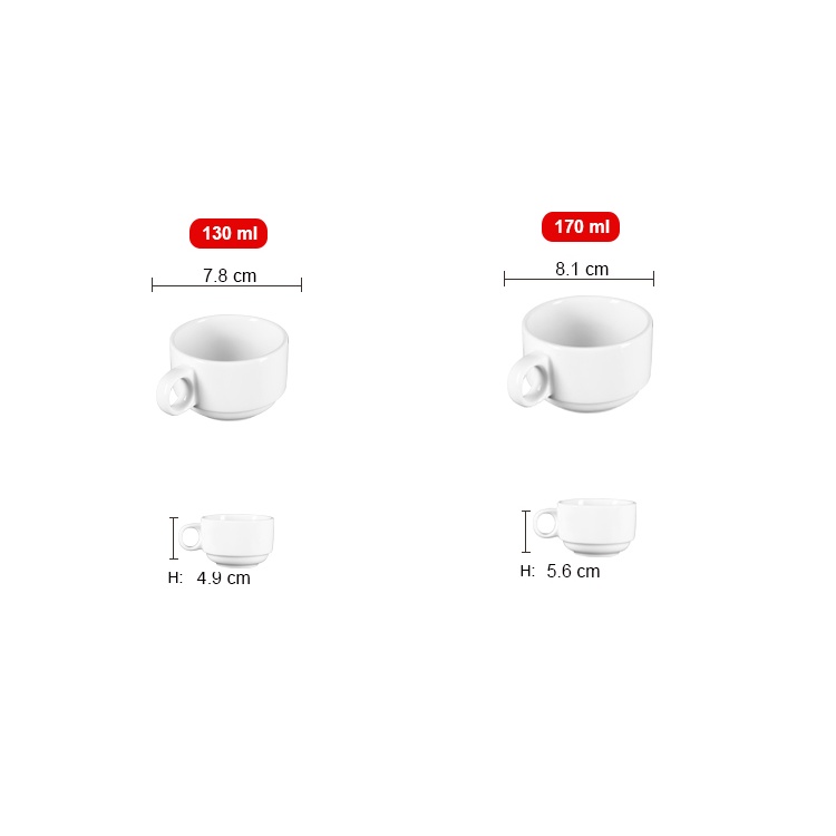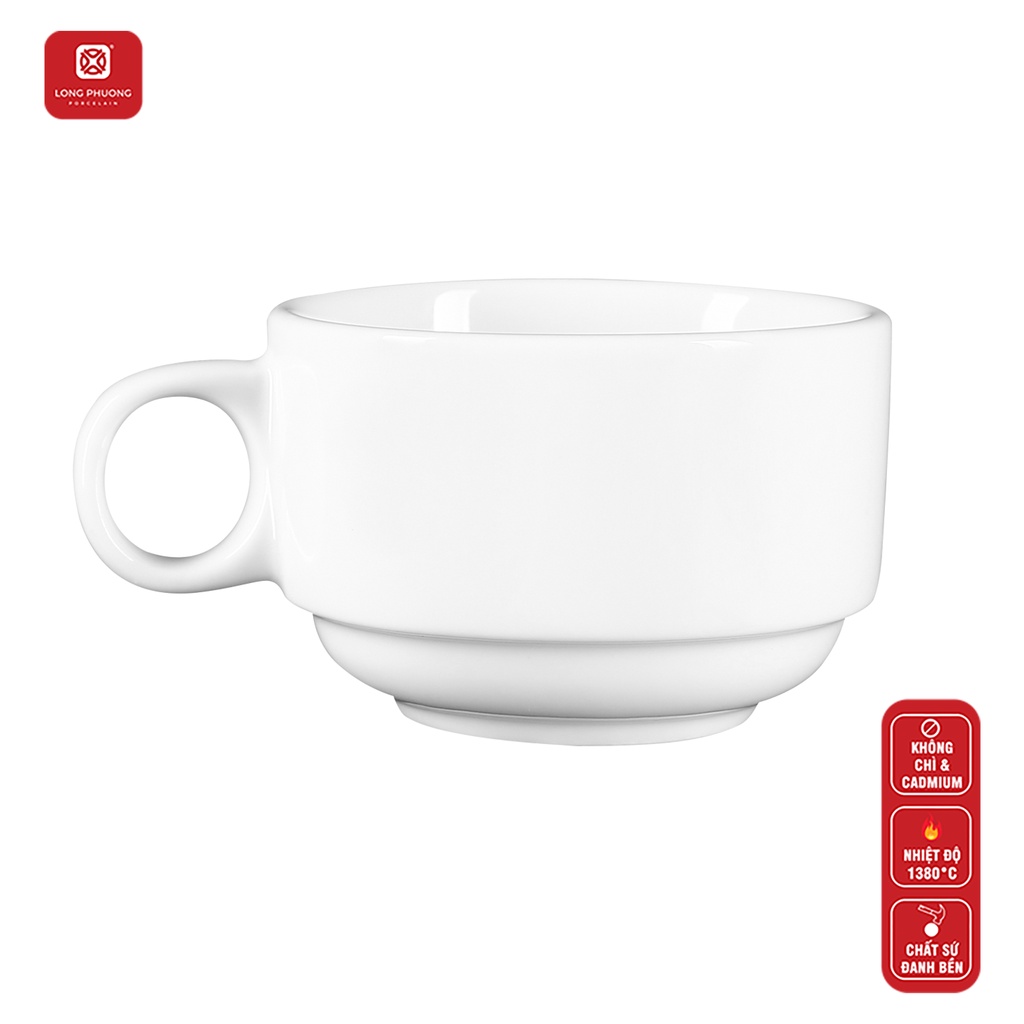 Chén số sứ trắng cao cấp Long Phương - Chén uống trà - Tách , ly Cafe - Dung tích 65ml đến 170ml
