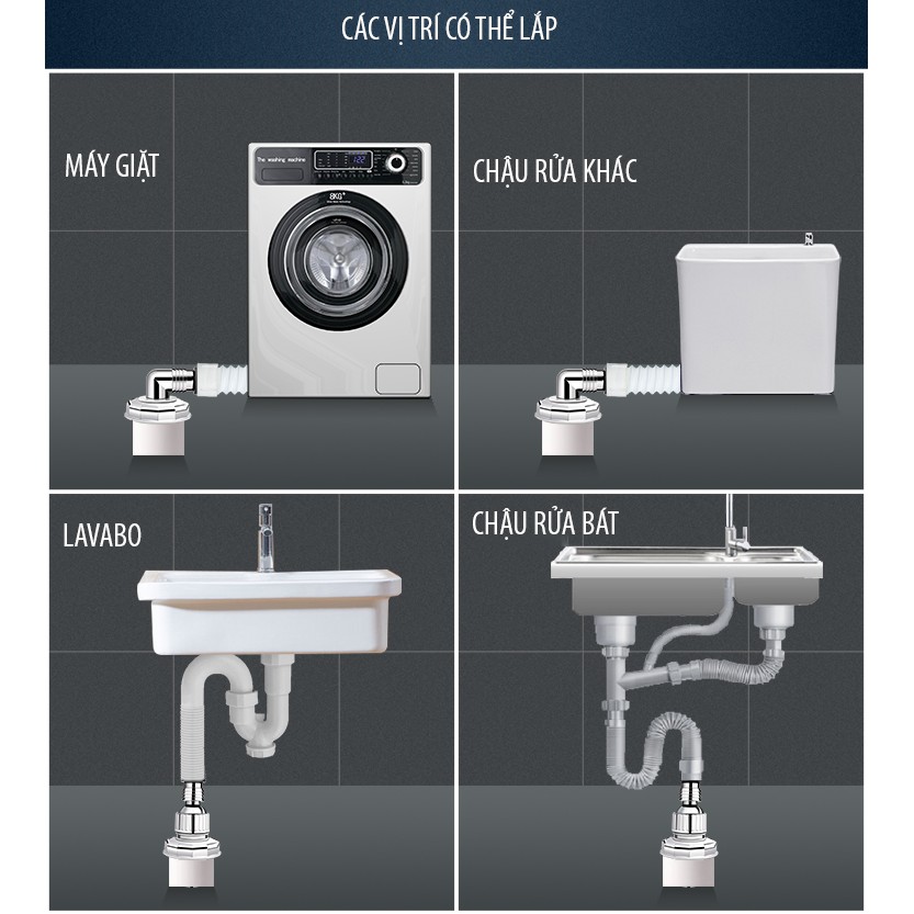 Bộ thoát nước máy giặt, chậu rửa, thoát sàn ngăn mùi, ngăn côn trùng, cổ xoay 360 độ kín Minh House