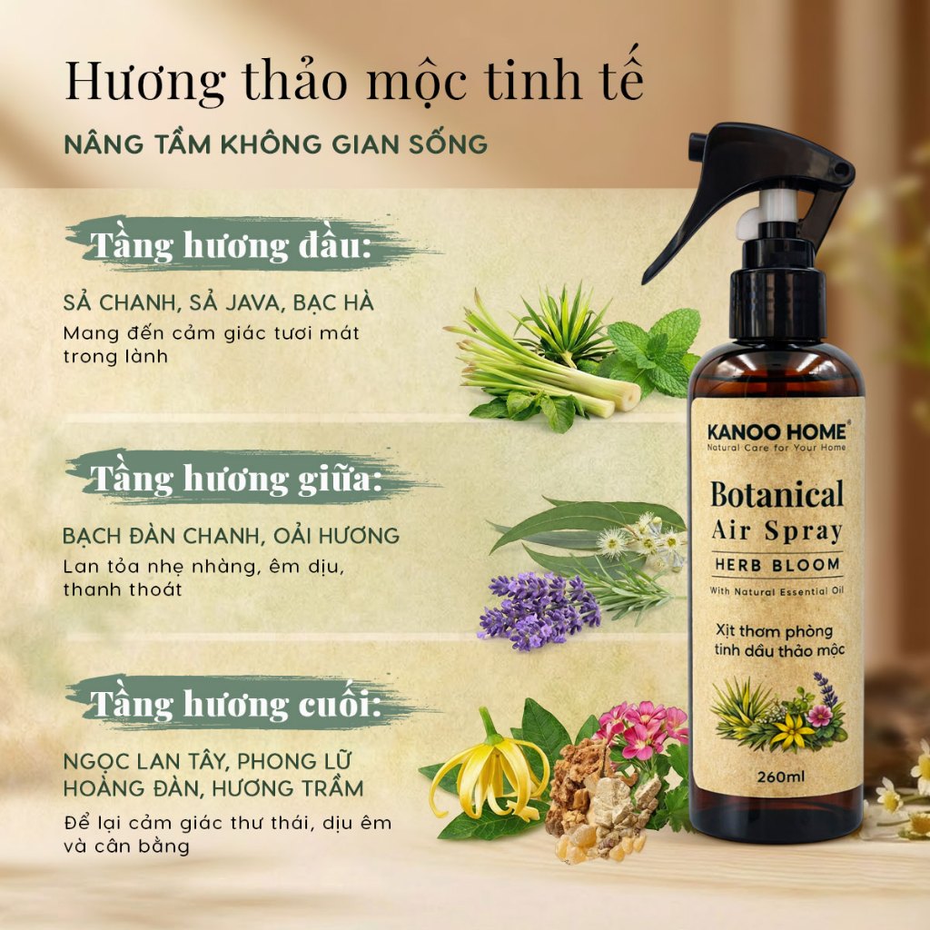 Combo 2 Xịt thơm phòng tinh dầu thảo mộc Herb Bloom. Khử mùi, làm thơm phòng ốc, hỗ trợ xua đuổi muỗi, kiến, gián,..