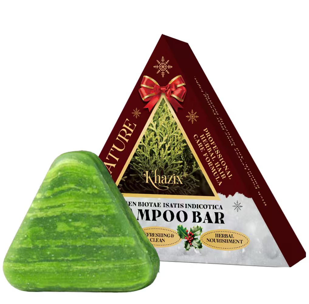 Thanh dầu gội thảo dược làm dịu tóc - Cỏ Usman & Lá cây bách, Xà phòng hình tam giác xanh tự nhiên cho tóc khỏe.