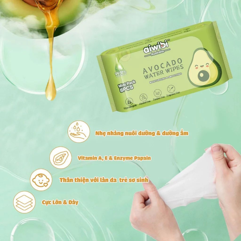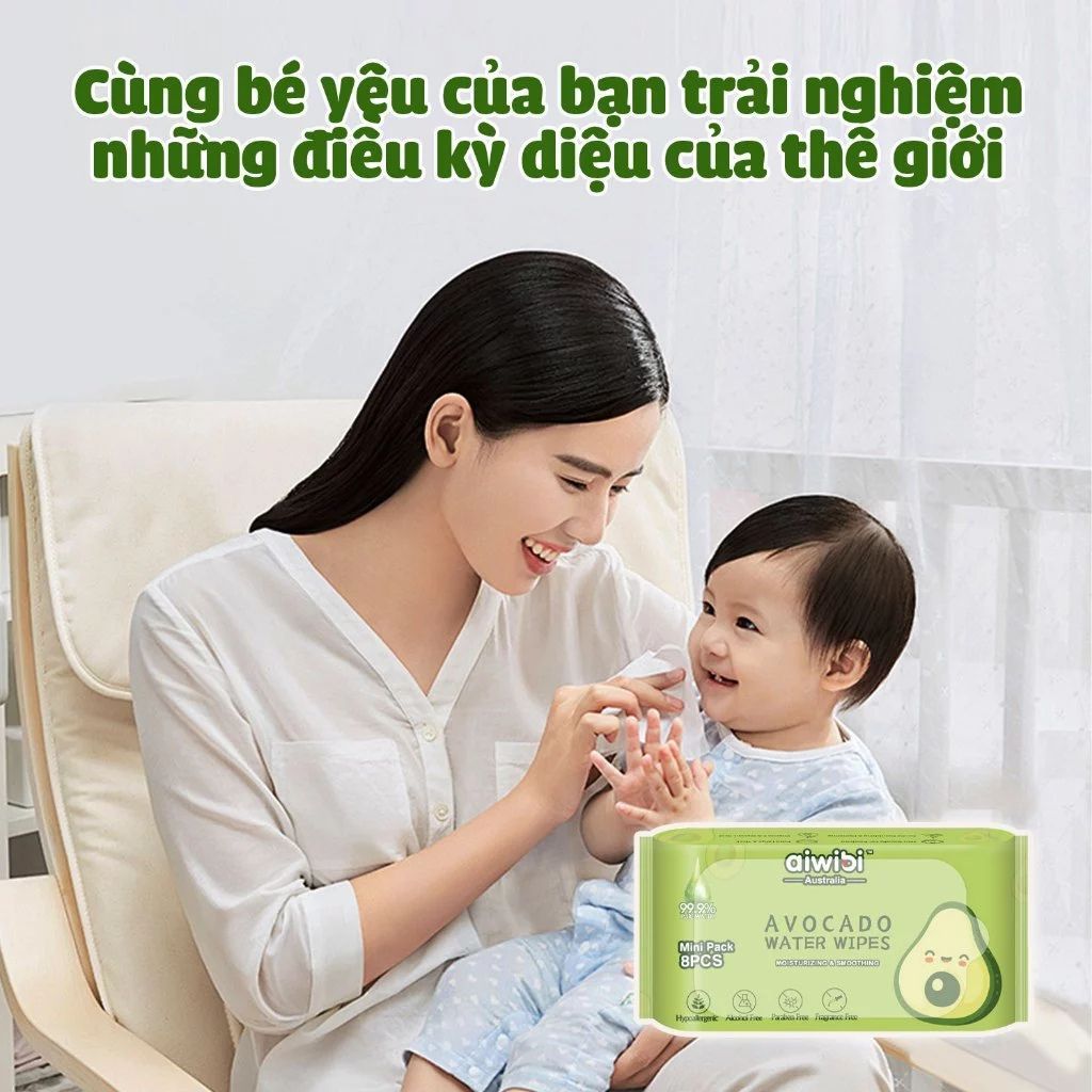 khăn giấy ướt mini bỏ túi, khăn giấy ướt mini cho bé, khăn giấy mini cao cấp Aiwibi của Úc