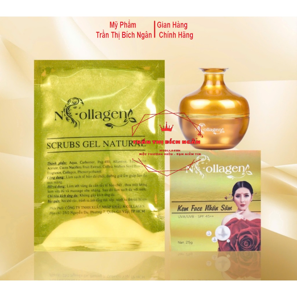 Kem face nhân sâm dưỡng trắng giảm nám tàn nhang N Collagen Bích Ngân 18g - Tặng gói tẩy da chết