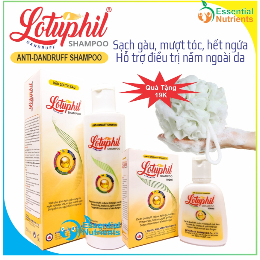 LOTUPHIL DANDRUFF SHAMPOO 250ml dầu tắm gội 2 trong 1, hết gàu, hết ngứa, phục hồi tóc khô sơ, chẻ ngọn - Essential