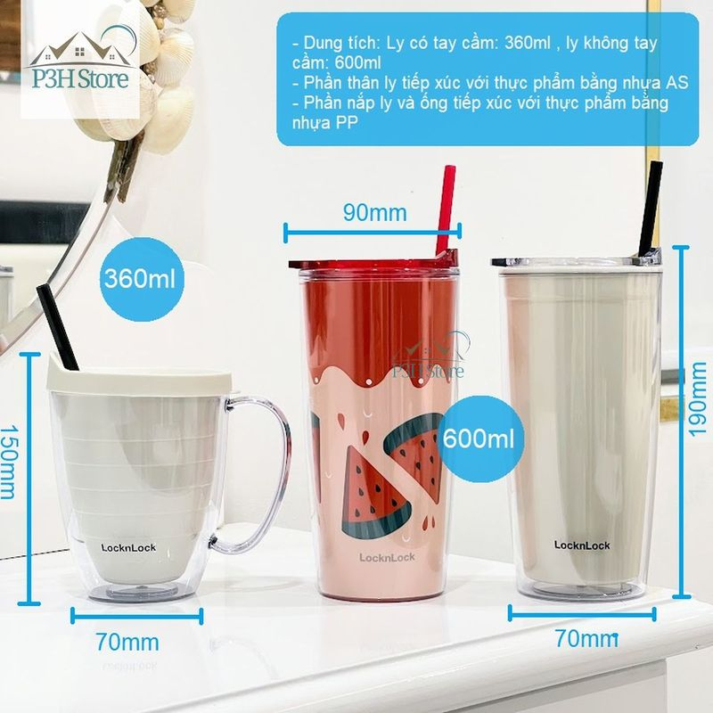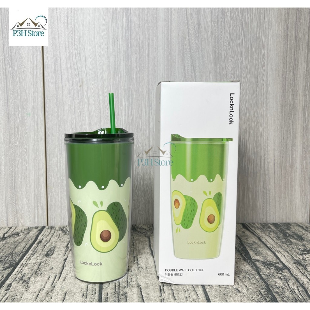 Ly nhựa 2 lớp LocknLock Cold Cup 360ml/600ml kèm ống nắp trượt đóng mở HAP523 HAP524 HAP525 P3HStore