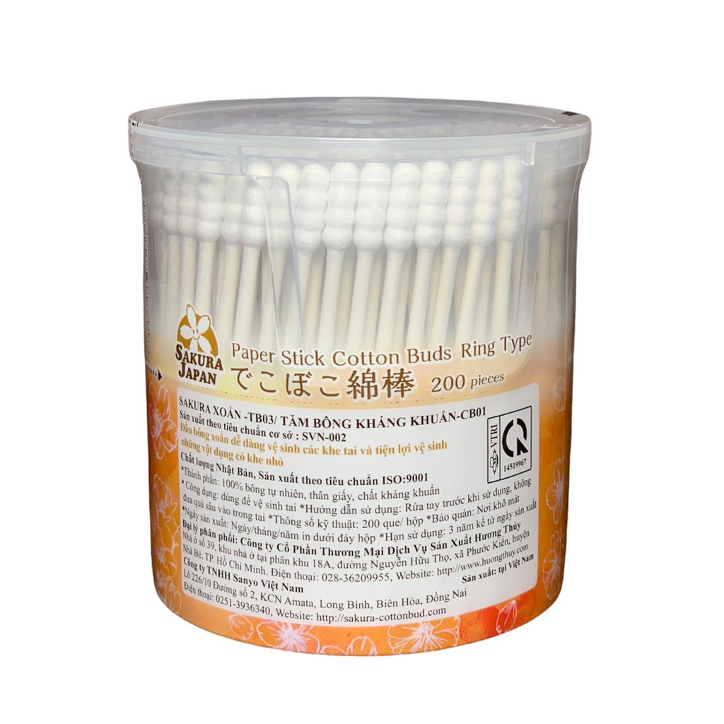 Tăm bông kháng khuẩn Sakura xoắn TB03 tiêu chuẩn Nhật Bản (2 đầu xoắn) lọ 200 que - Người lớn