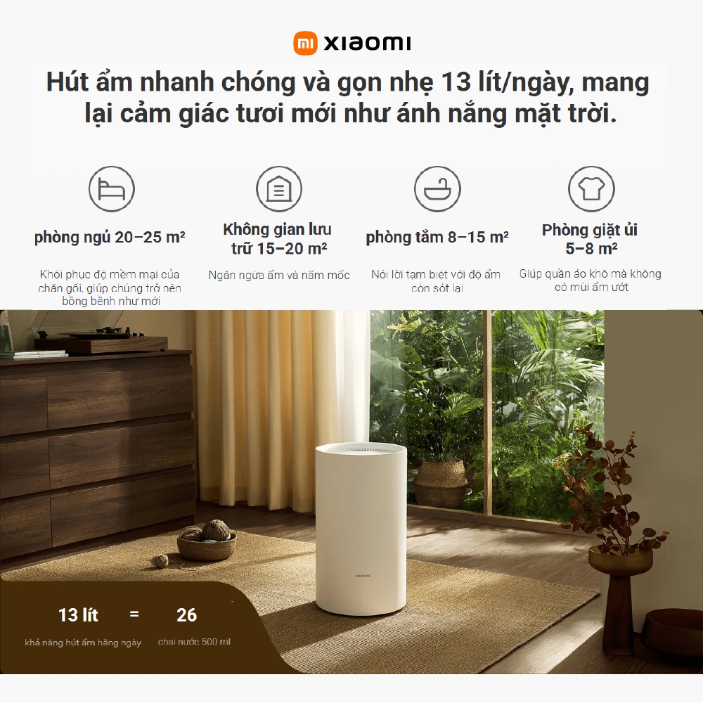 Máy hút ẩm 13L Xiaomi Smart Dehumidifier Lite EU BHR8374EU - 3 chế độ hút ẩm - Kết nối app MiHome/Xiaomi Home
