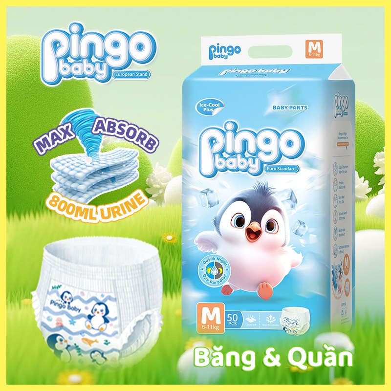 Tã/Bỉm quần dán Pingo size NB50/S50/M50/L50 siêu mỏng thoáng, thấm hút lên tới 800ml