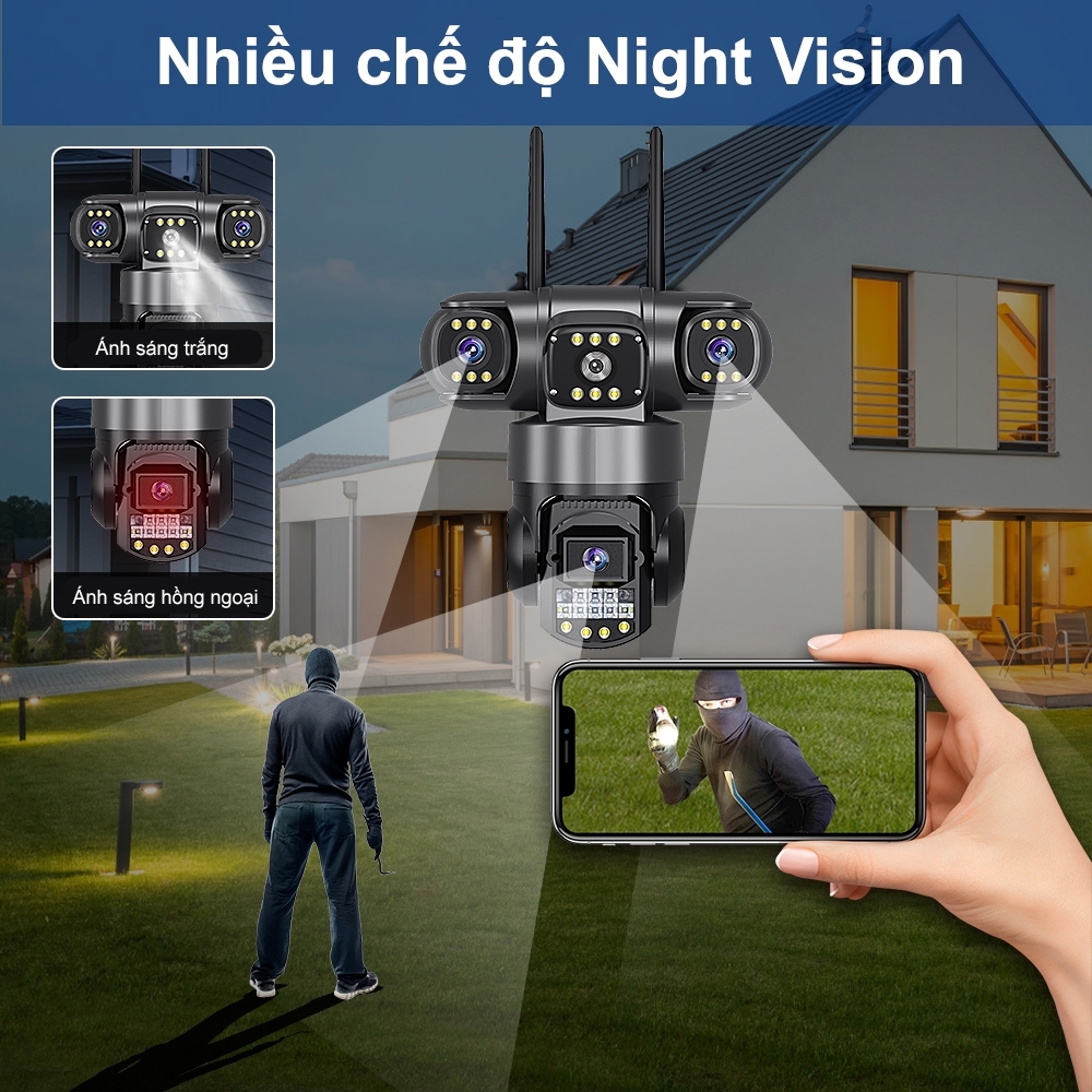 15MP Camera 3 Mắt giám WiFi/4G xoay 360 độ,đàm thoại 2 chiều,Báo Động Chuyển Động,Chống Nước IP66,CCTV Camera