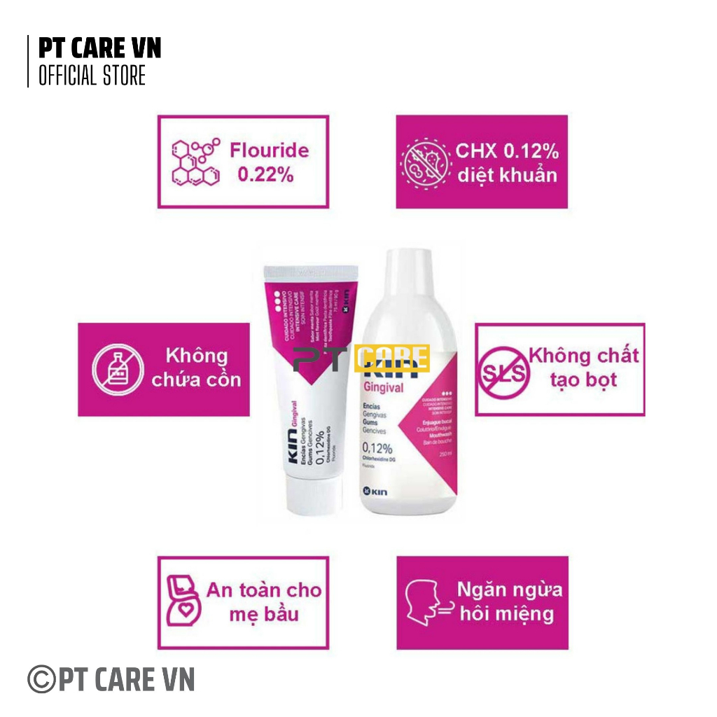 PT CARE VN | Nước súc miệng Kin Gingival Viêm Nướu,B5, Sensikin Ê Buốt, Fluor Kin Trẻ Em, Ortho Kin Niềng Răng Chỉnh Nha
