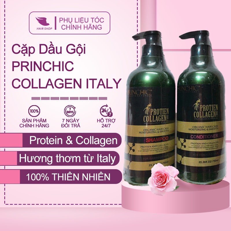 Cặp Dầu Gội Dầu Xả Princhic Collagen Italia Chuyên Về Rụng Tóc, Giúp Mọc Tóc, Phục Hồi Tóc Mềm Mượt 750ml
