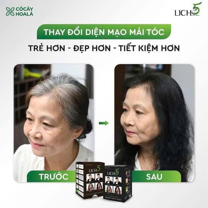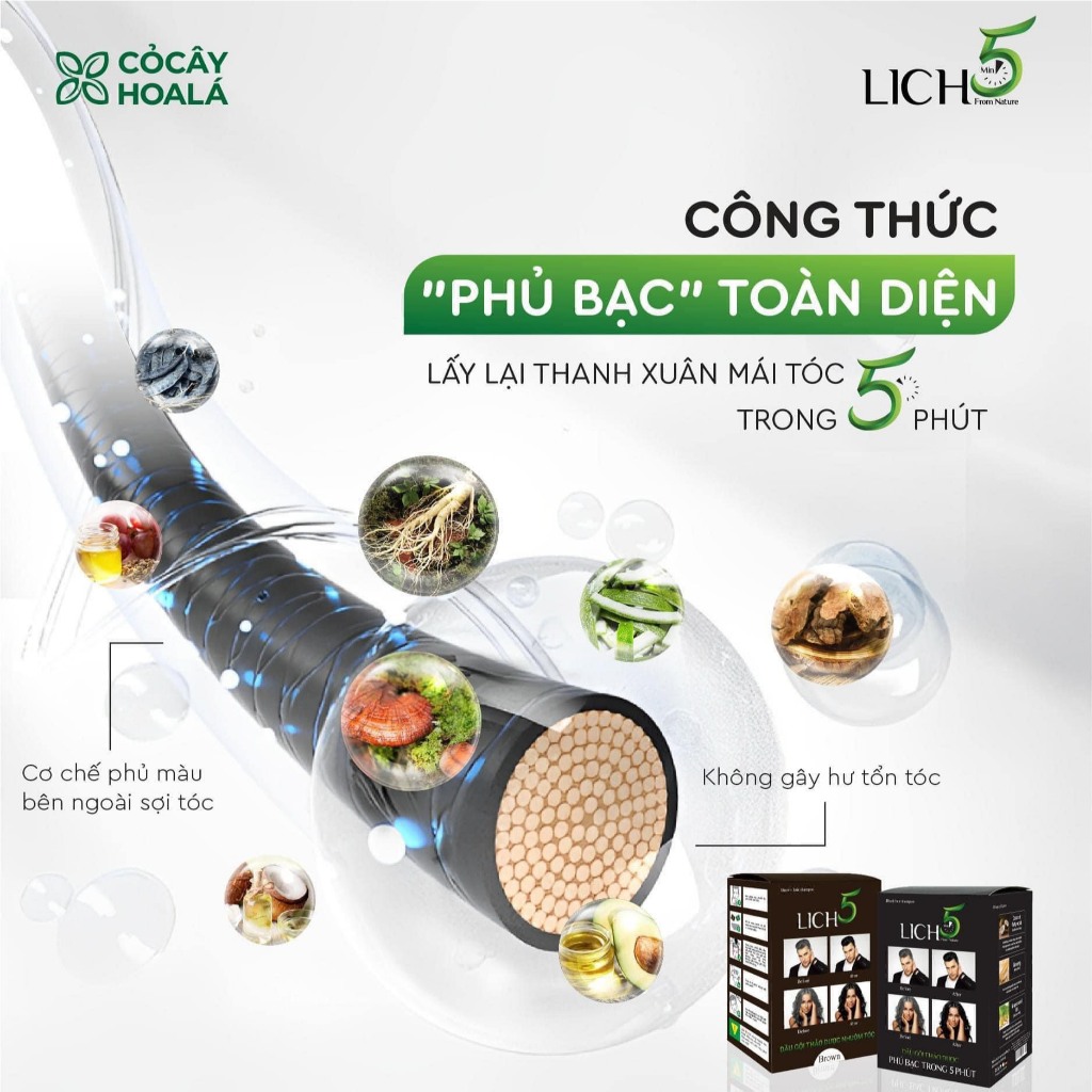 Dầu gội phủ bạc thảo dược Lich5 Cỏ Cây Hoa Lá màu tự nhiên không ngứa rát kích ứng da đầu hộp 10 gói