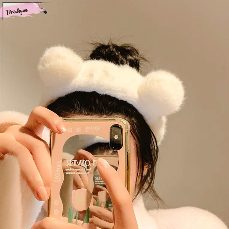 🎶 siêu mềm mịn Tai Gấu Sang Trọng Băng Đô Nữ Lông Trắng Rửa Mặt Băng Đô Rộng Phụ Kiện Tóc