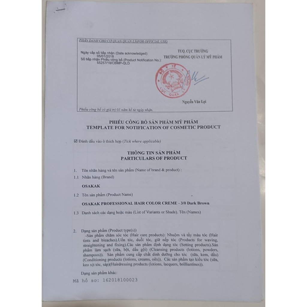 Kem nhuộm tóc Osakak 100g (Thuốc nhuộm tóc , chưa có oxy trợ nhuộm và găng tay)